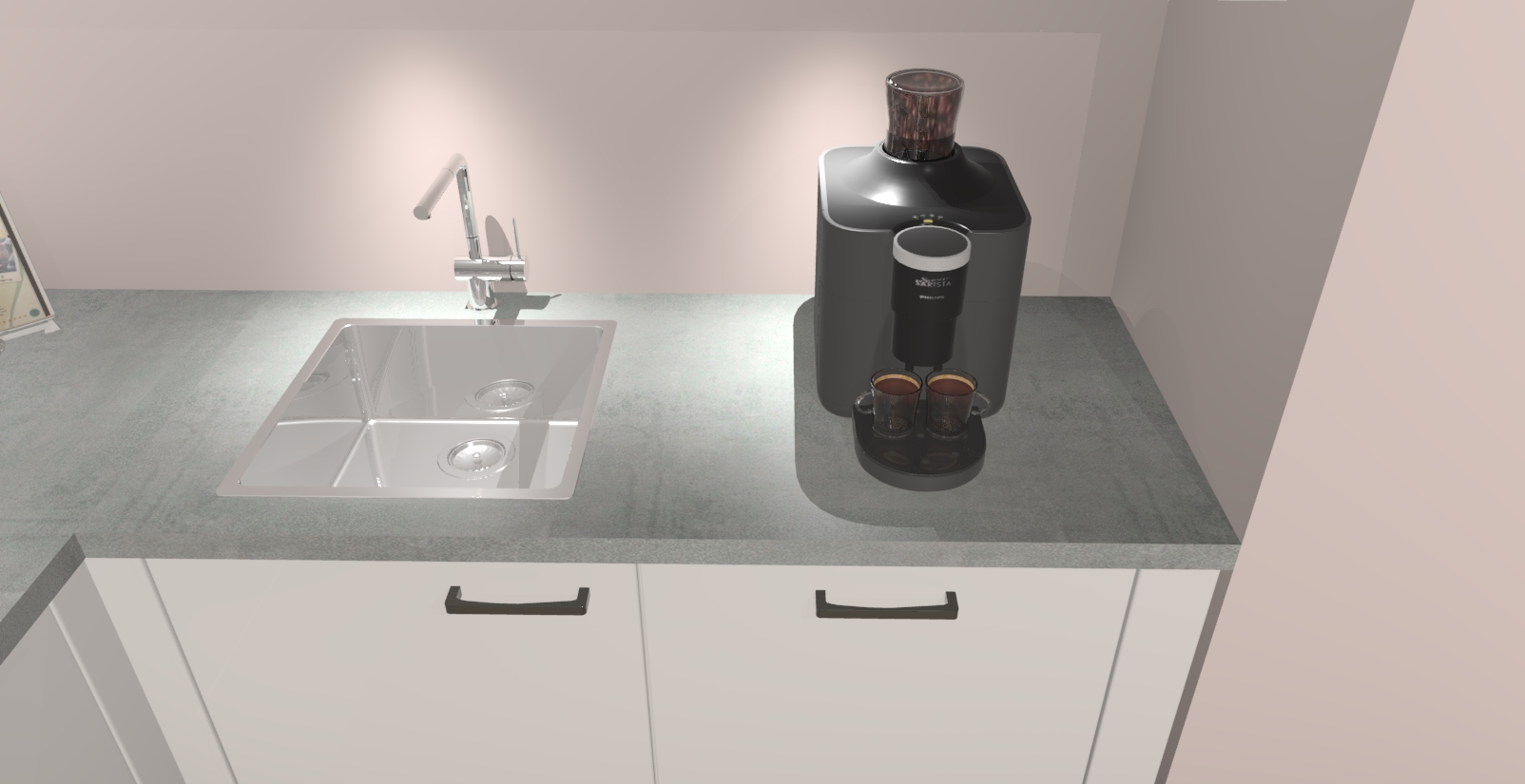- De spoelbak is nog niet in gevreesd. Dit dient tijdens het werk gedaan te worden
