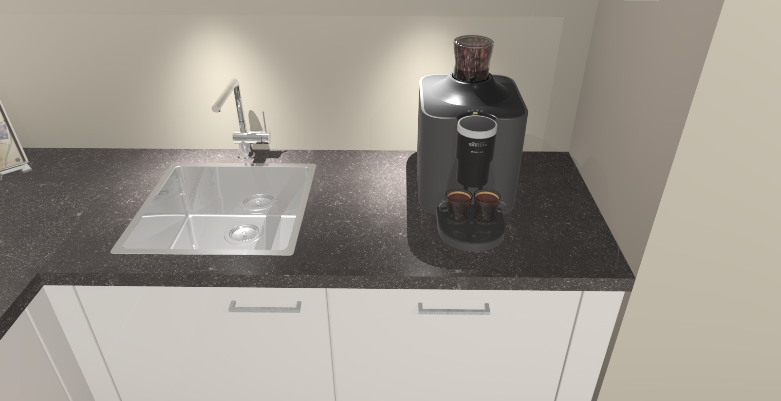 - De spoelbak is nog niet in gevreesd. Dit dient tijdens het werk gedaan te worden