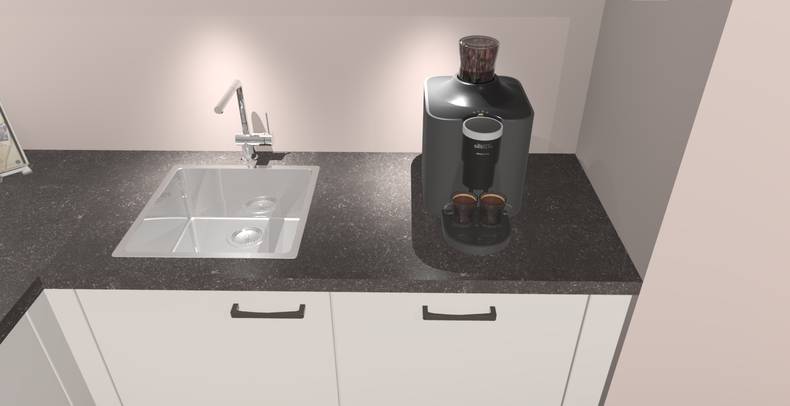 - De spoelbak is nog niet in gevreesd. Dit dient tijdens het werk gedaan te worden