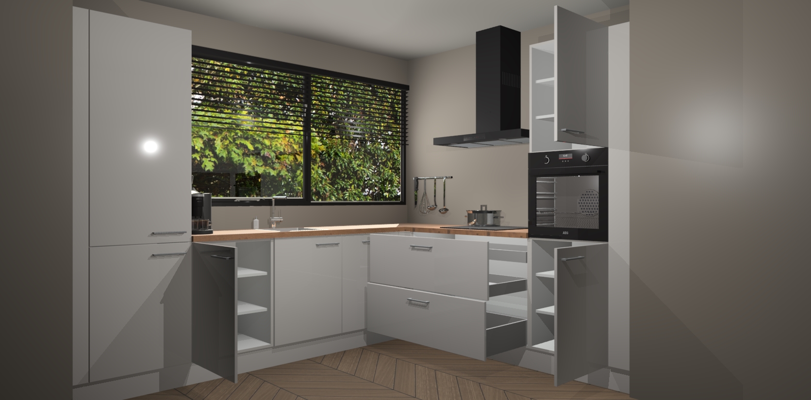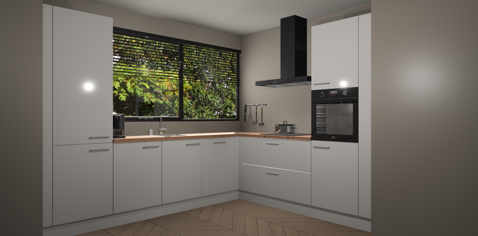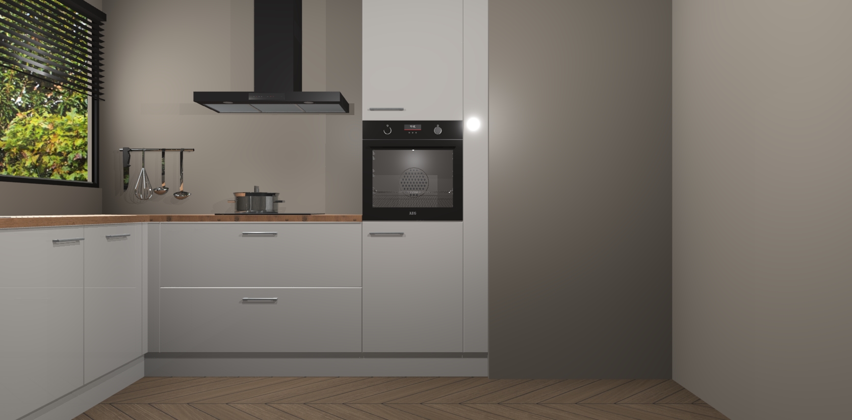 Met een modern, tijdloos design en ruime opslagruimte, zult u zich in no-time thuis voelen in uw nieuwe keuken. Uw leven wordt eenvoudiger met de soft-close deuren die voor het ultieme stille comfort zorgen - geen geluid dat u stoort terwijl u kookt. Ook is de keuken voorzien van 5 ingebouwde apparaten: een oven, inductie kookplaat, afzuigkap, vaatwasser en koelkast. Deze kunnen gemakkelijk na bestelling worden bijgewerkt naar AEG - waardoor uw luxe ervaring compleet is.