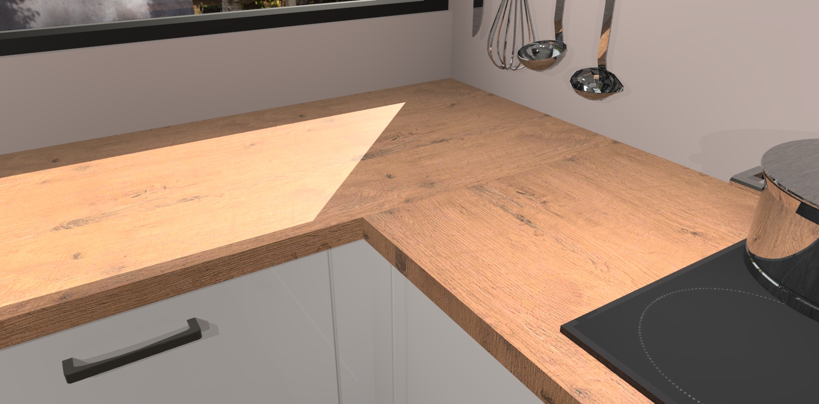 - Bij een hoekwerkblad zijn de hoeken in gevreesd en op maat gemaakt