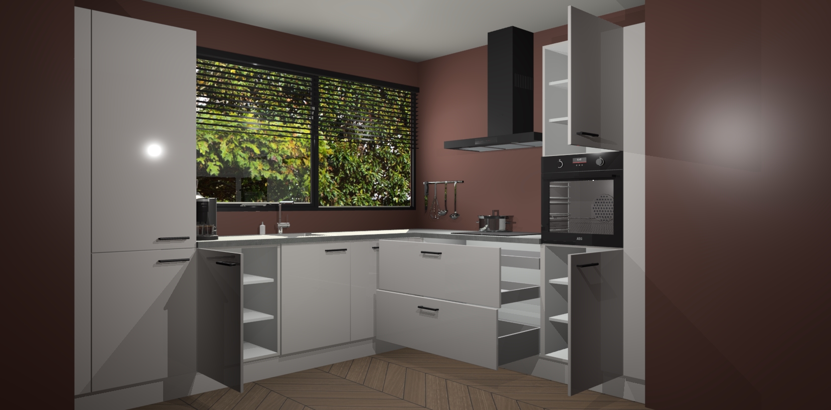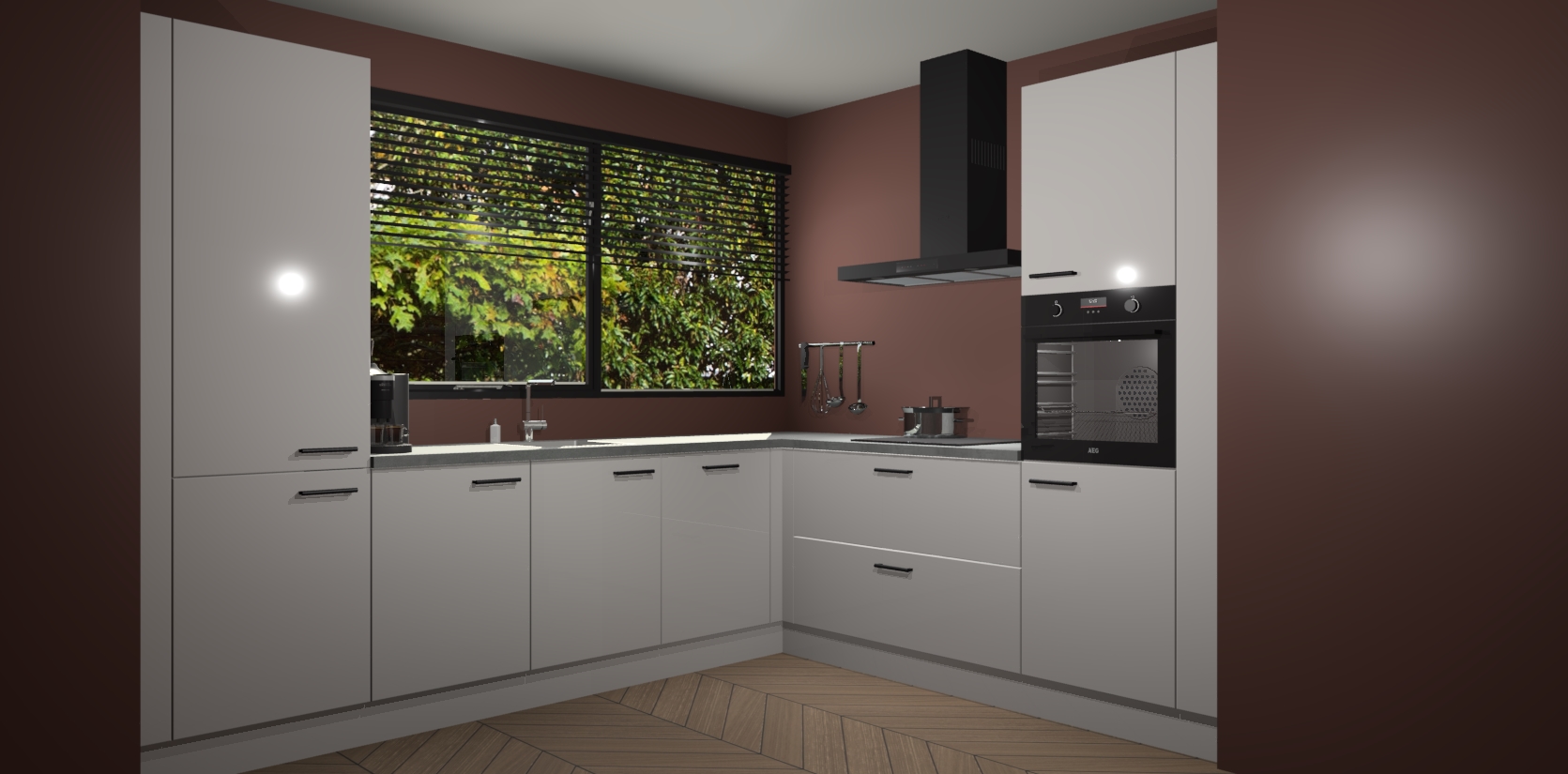 Met een modern, tijdloos design en ruime opslagruimte, zult u zich in no-time thuis voelen in uw nieuwe keuken. Uw leven wordt eenvoudiger met de soft-close deuren die voor het ultieme stille comfort zorgen - geen geluid dat u stoort terwijl u kookt. Ook is de keuken voorzien van 5 ingebouwde apparaten: een oven, inductie kookplaat, afzuigkap, vaatwasser en koelkast. Deze kunnen gemakkelijk na bestelling worden bijgewerkt naar AEG - waardoor uw luxe ervaring compleet is.