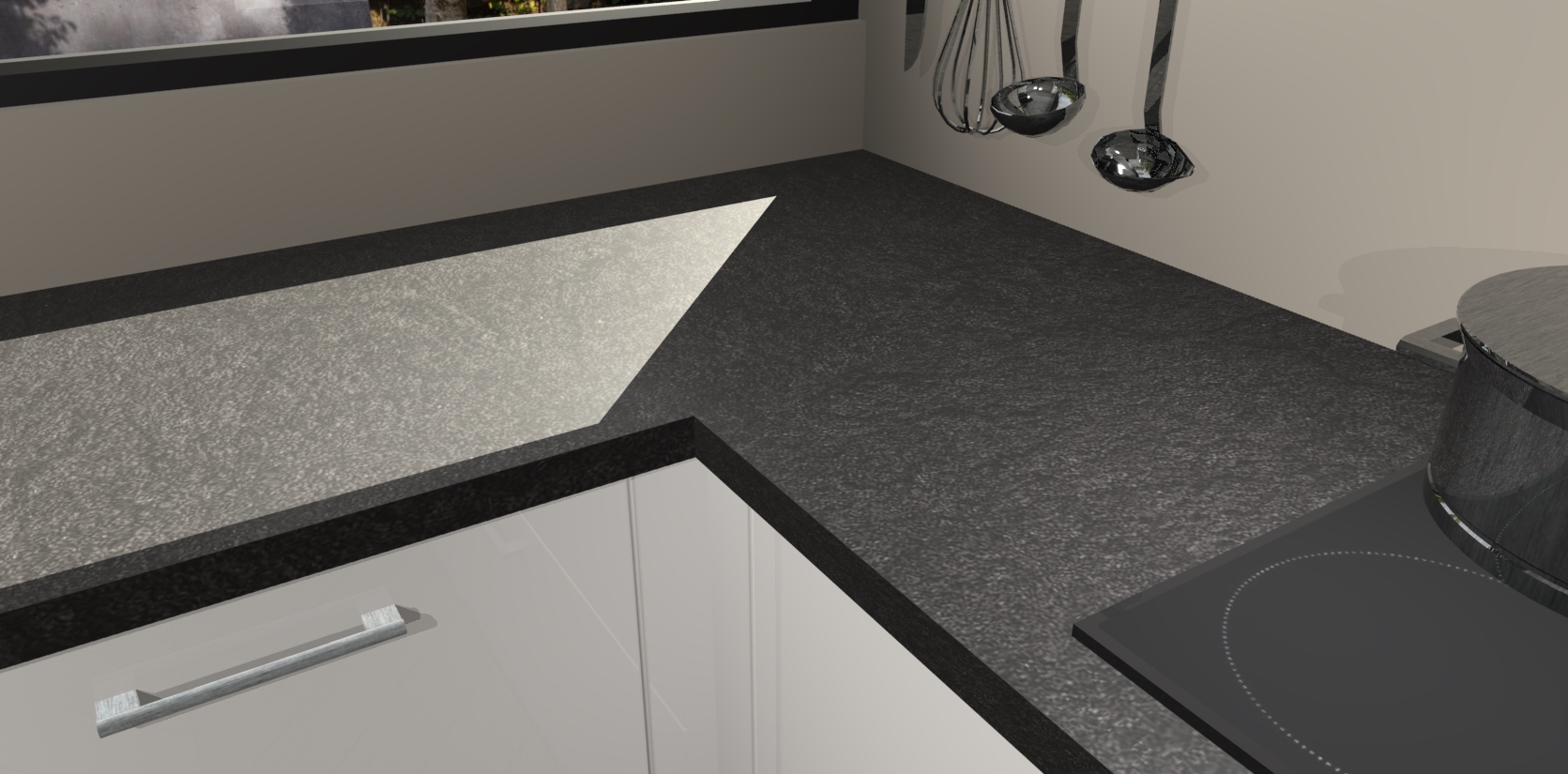 - Bij een hoekwerkblad zijn de hoeken in gevreesd en op maat gemaakt