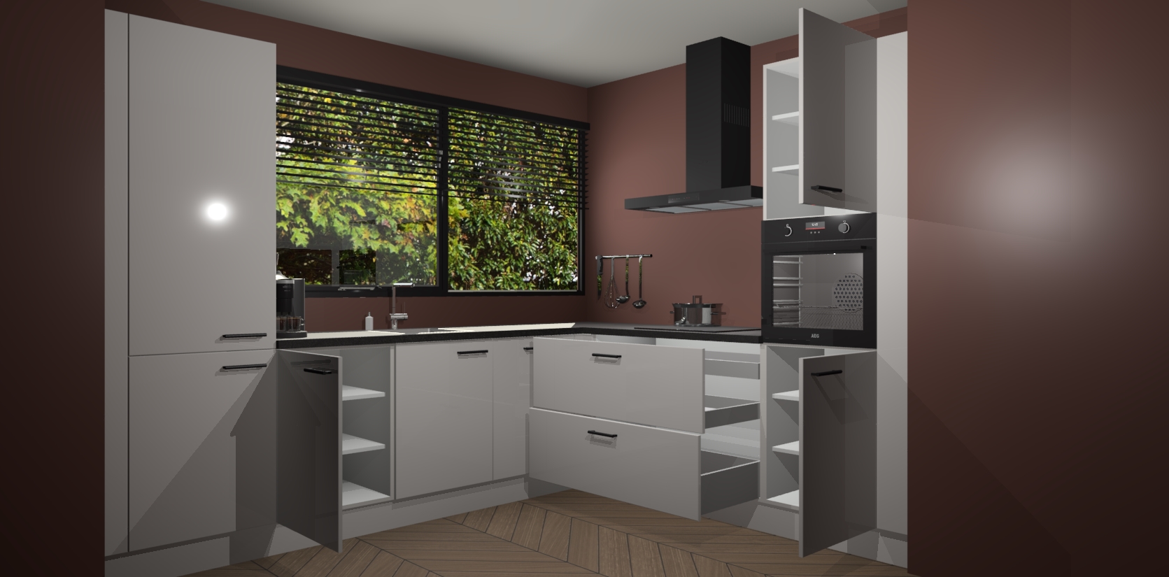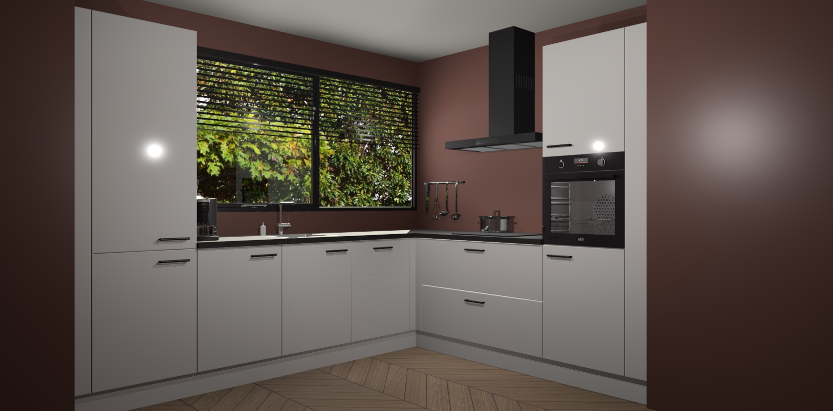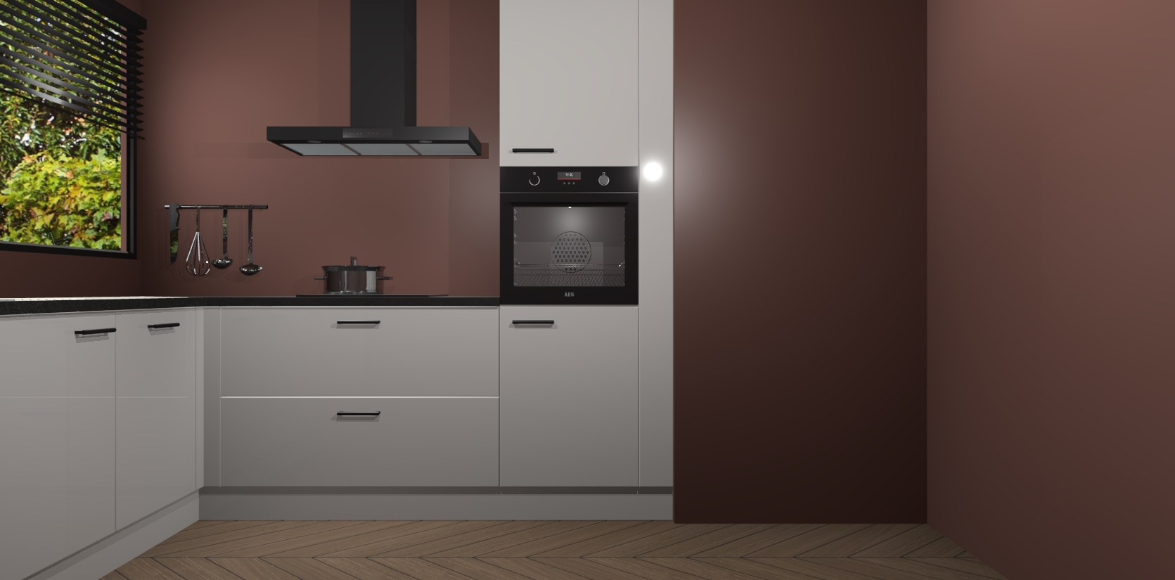 Met een modern, tijdloos design en ruime opslagruimte, zult u zich in no-time thuis voelen in uw nieuwe keuken. Uw leven wordt eenvoudiger met de soft-close deuren die voor het ultieme stille comfort zorgen - geen geluid dat u stoort terwijl u kookt. Ook is de keuken voorzien van 5 ingebouwde apparaten: een oven, inductie kookplaat, afzuigkap, vaatwasser en koelkast. Deze kunnen gemakkelijk na bestelling worden bijgewerkt naar AEG - waardoor uw luxe ervaring compleet is.