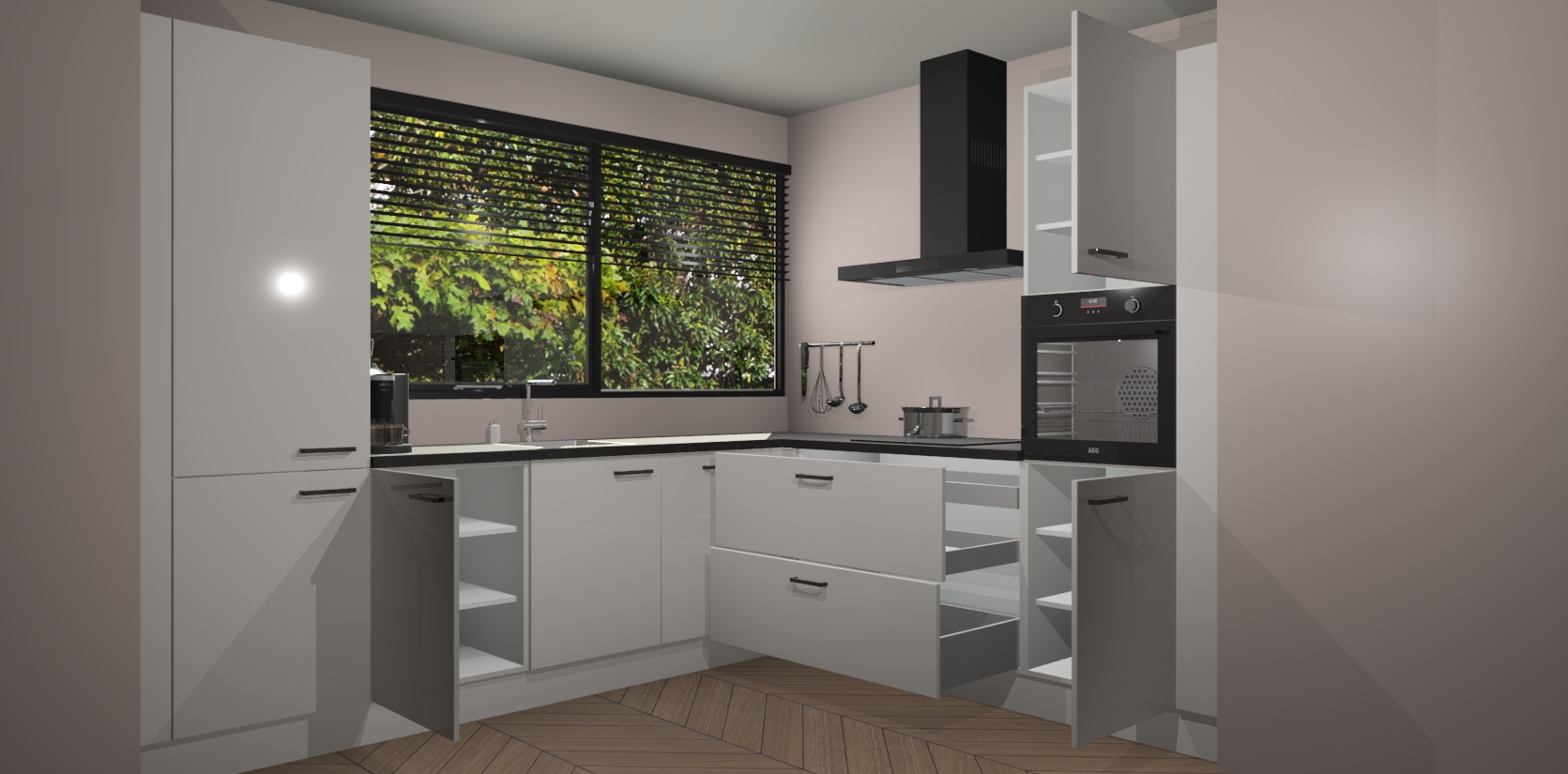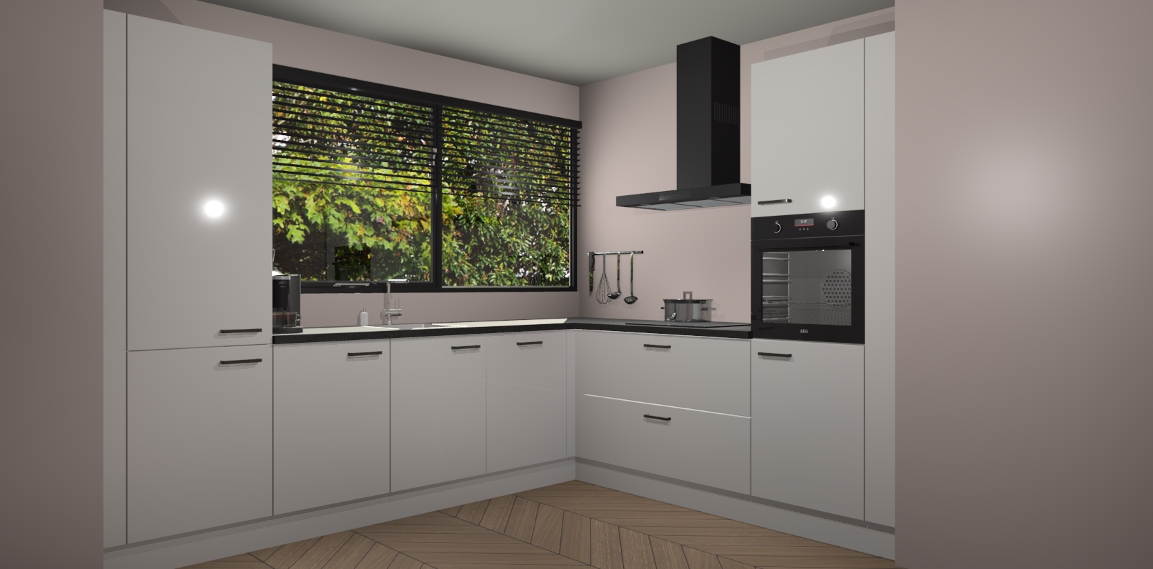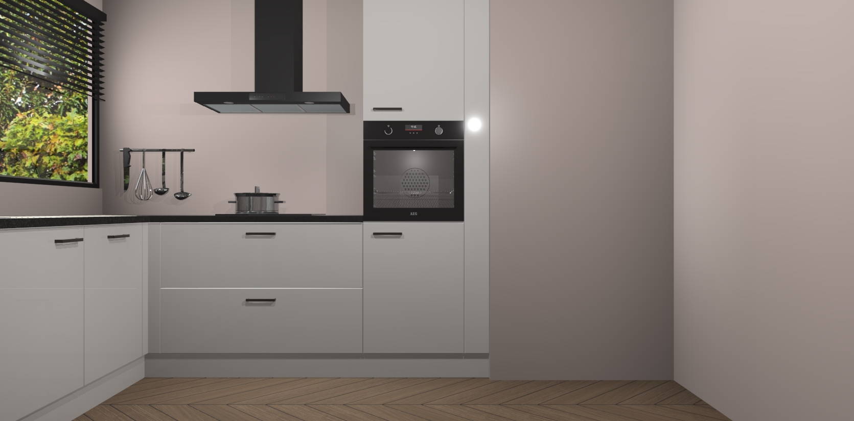 Met een modern, tijdloos design en ruime opslagruimte, zult u zich in no-time thuis voelen in uw nieuwe keuken. Uw leven wordt eenvoudiger met de soft-close deuren die voor het ultieme stille comfort zorgen - geen geluid dat u stoort terwijl u kookt. Ook is de keuken voorzien van 5 ingebouwde apparaten: een oven, inductie kookplaat, afzuigkap, vaatwasser en koelkast. Deze kunnen gemakkelijk na bestelling worden bijgewerkt naar AEG - waardoor uw luxe ervaring compleet is.