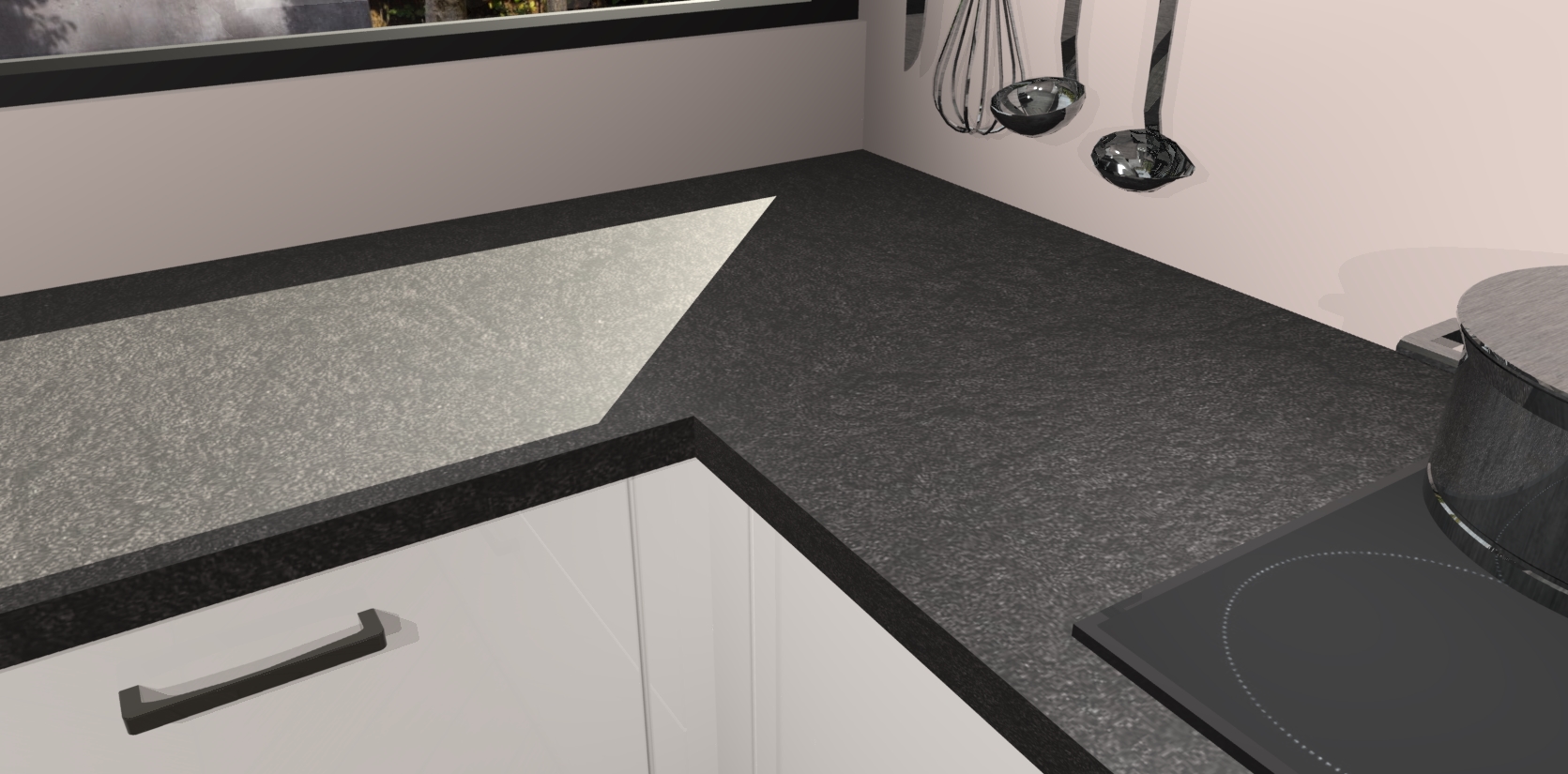 • Bij een hoekwerkblad zijn de hoeken in gevreesd en op maat gemaakt