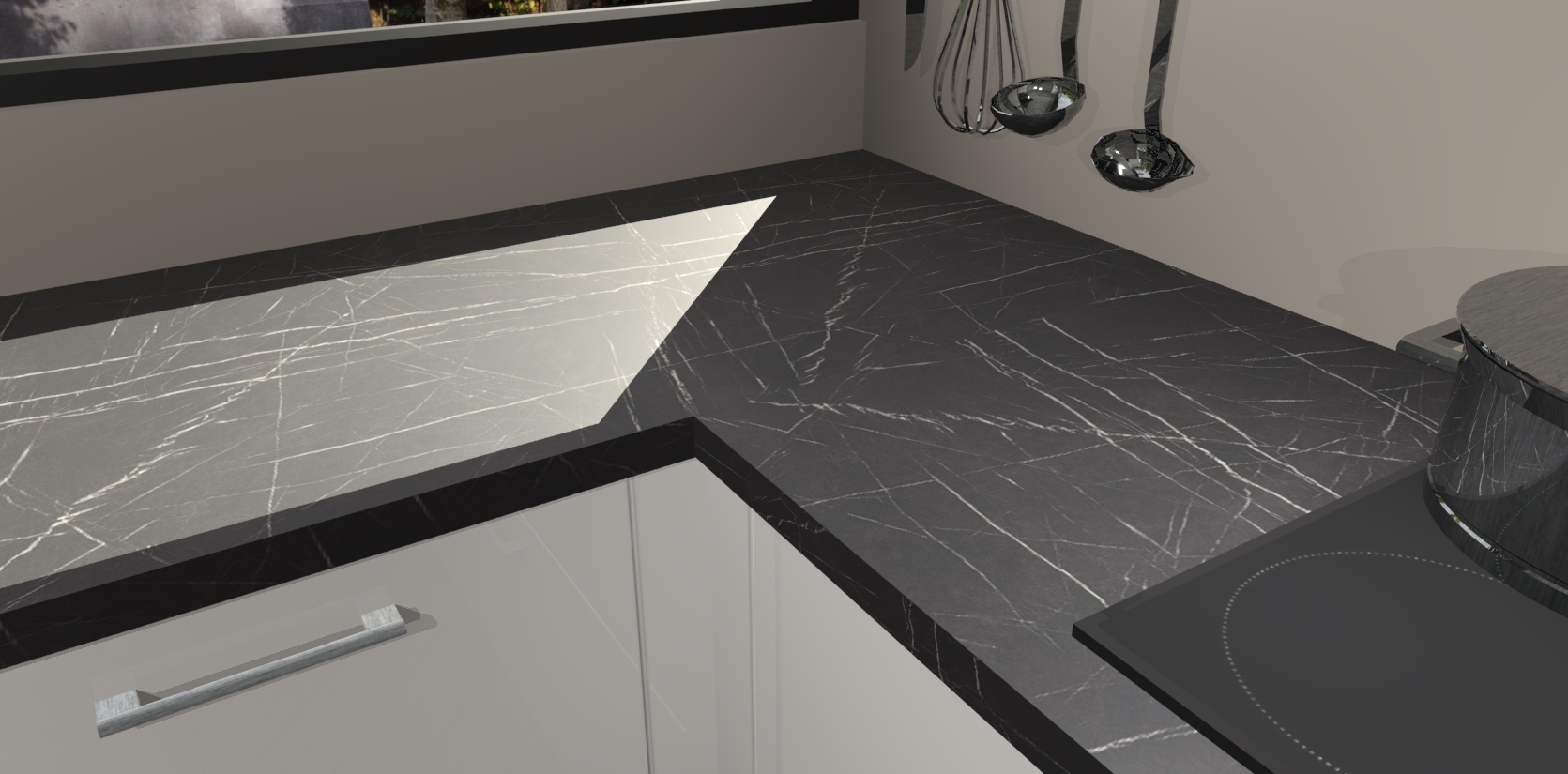 - Bij een hoekwerkblad zijn de hoeken in gevreesd en op maat gemaakt