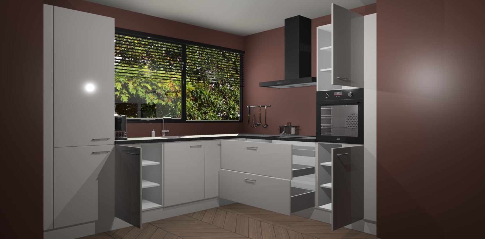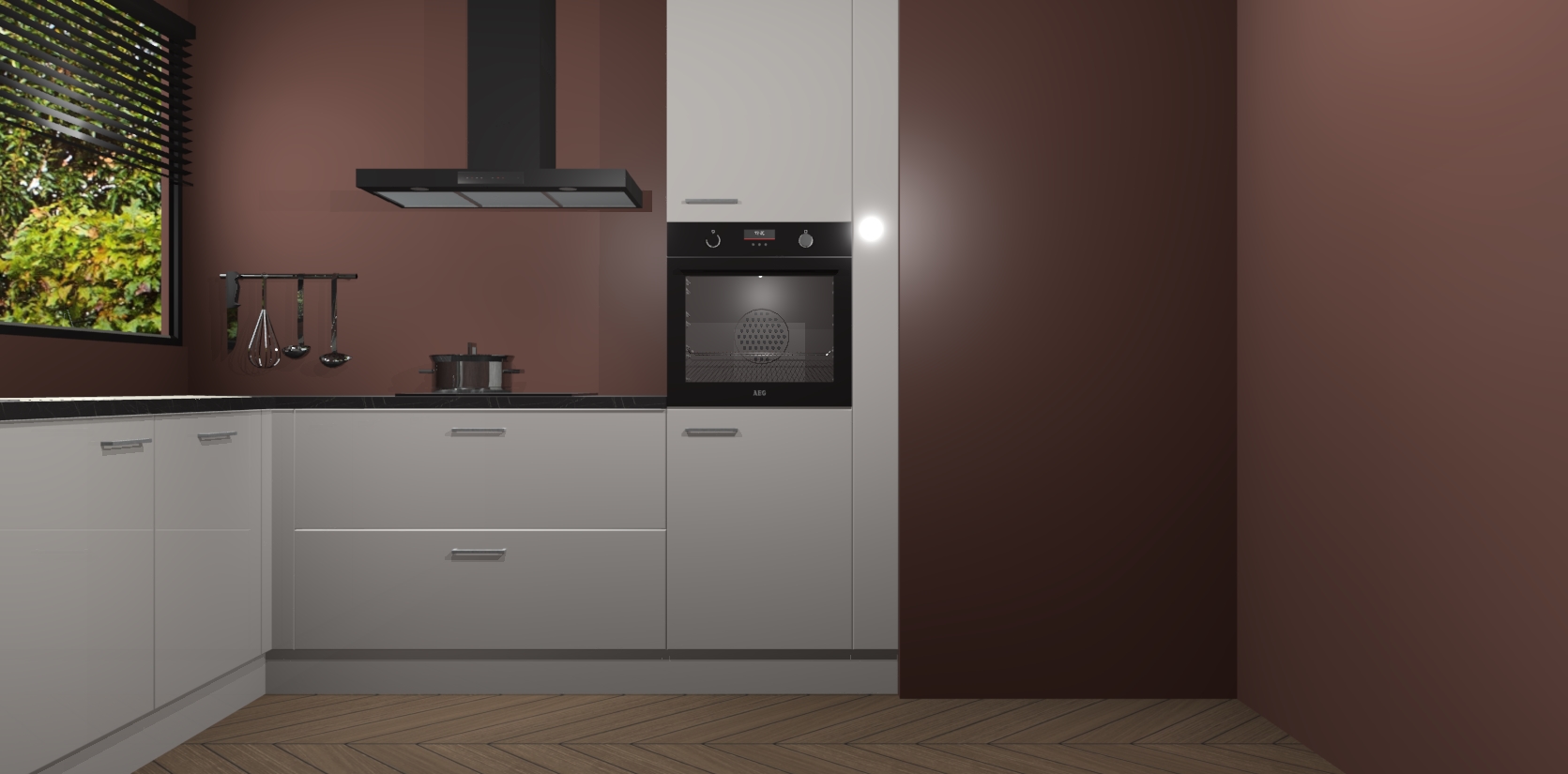Met een modern, tijdloos design en ruime opslagruimte, zult u zich in no-time thuis voelen in uw nieuwe keuken. Uw leven wordt eenvoudiger met de soft-close deuren die voor het ultieme stille comfort zorgen - geen geluid dat u stoort terwijl u kookt. Ook is de keuken voorzien van 5 ingebouwde apparaten: een oven, inductie kookplaat, afzuigkap, vaatwasser en koelkast. Deze kunnen gemakkelijk na bestelling worden bijgewerkt naar AEG - waardoor uw luxe ervaring compleet is.