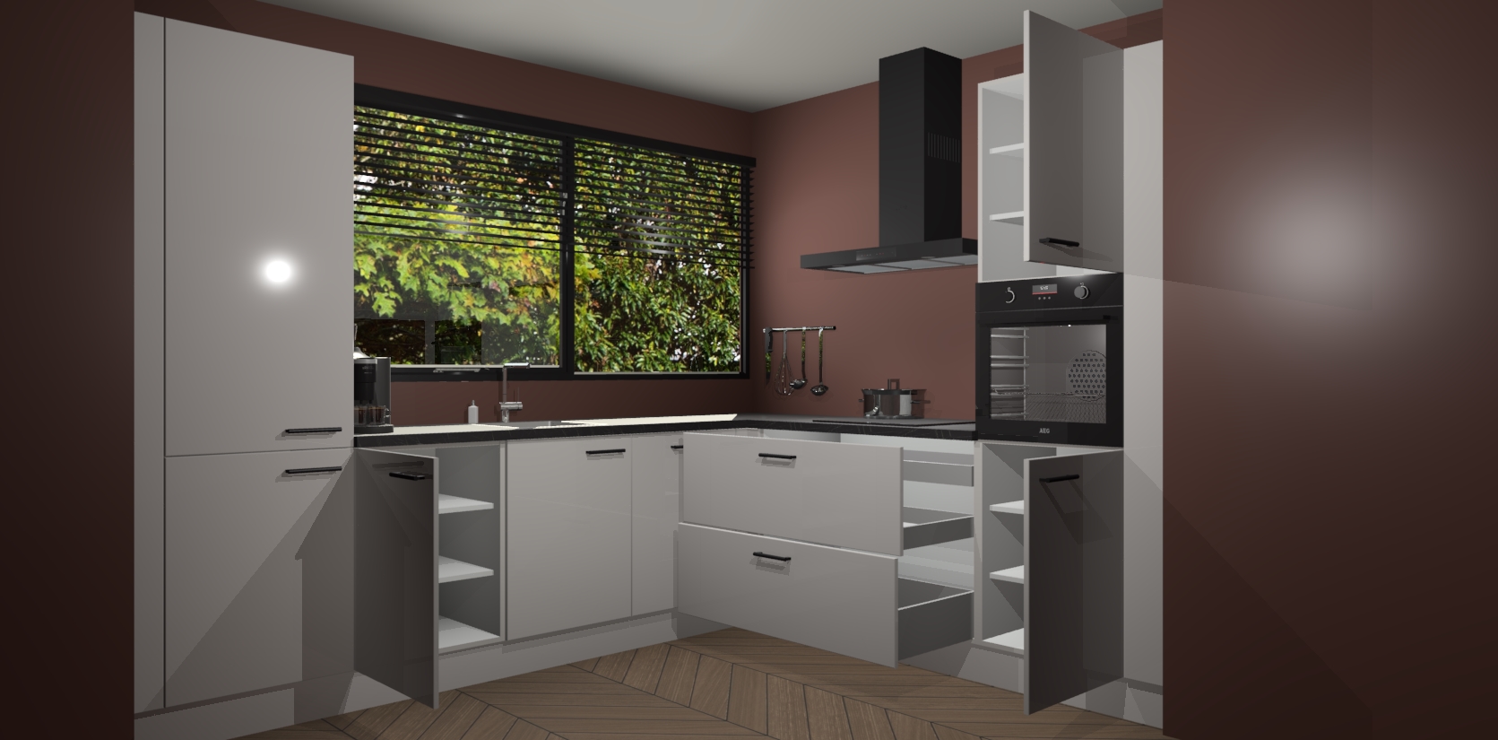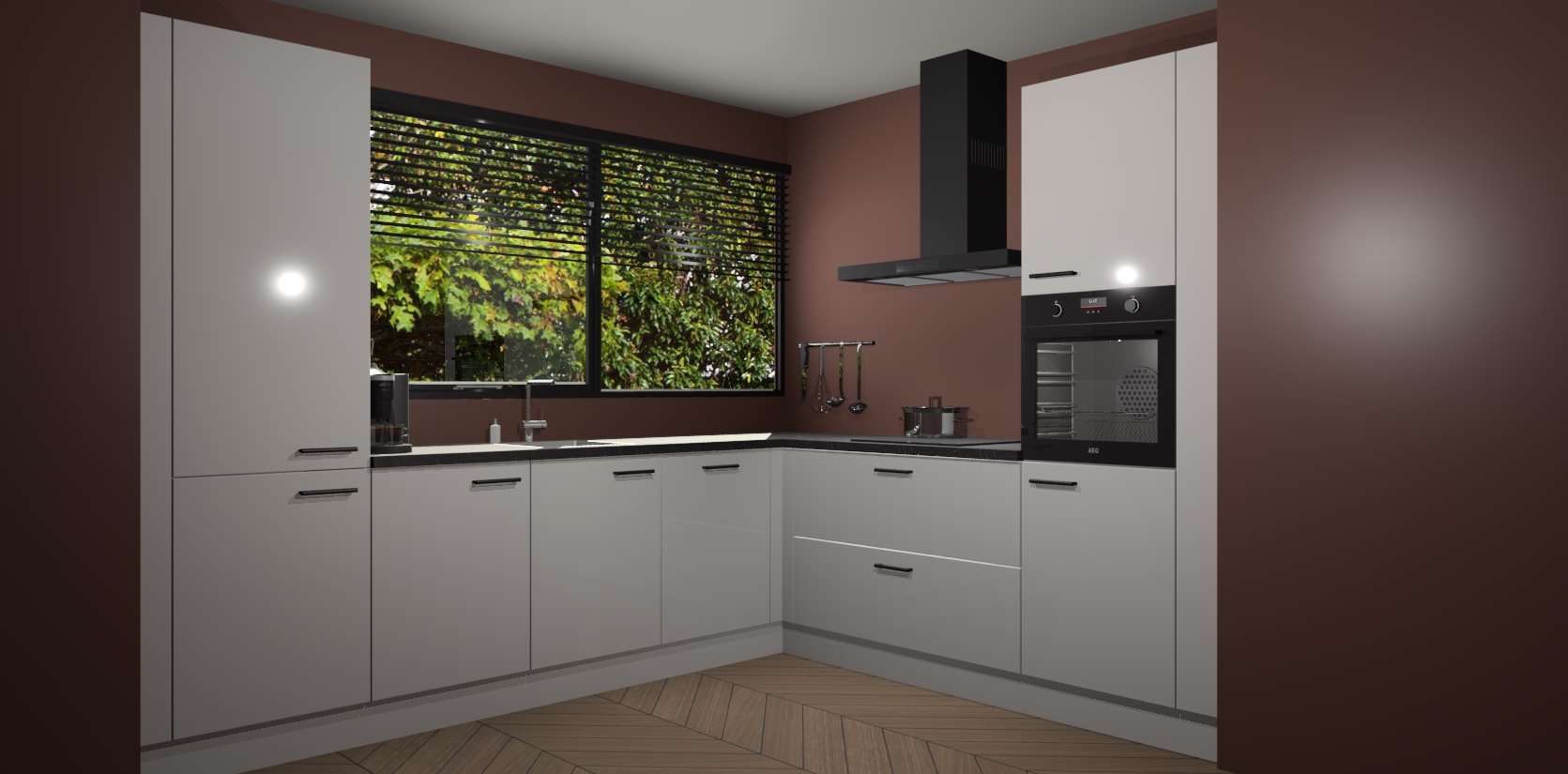 Met een modern, tijdloos design en ruime opslagruimte, zult u zich in no-time thuis voelen in uw nieuwe keuken. Uw leven wordt eenvoudiger met de soft-close deuren die voor het ultieme stille comfort zorgen - geen geluid dat u stoort terwijl u kookt. Ook is de keuken voorzien van 5 ingebouwde apparaten: een oven, inductie kookplaat, afzuigkap, vaatwasser en koelkast. Deze kunnen gemakkelijk na bestelling worden bijgewerkt naar AEG - waardoor uw luxe ervaring compleet is.