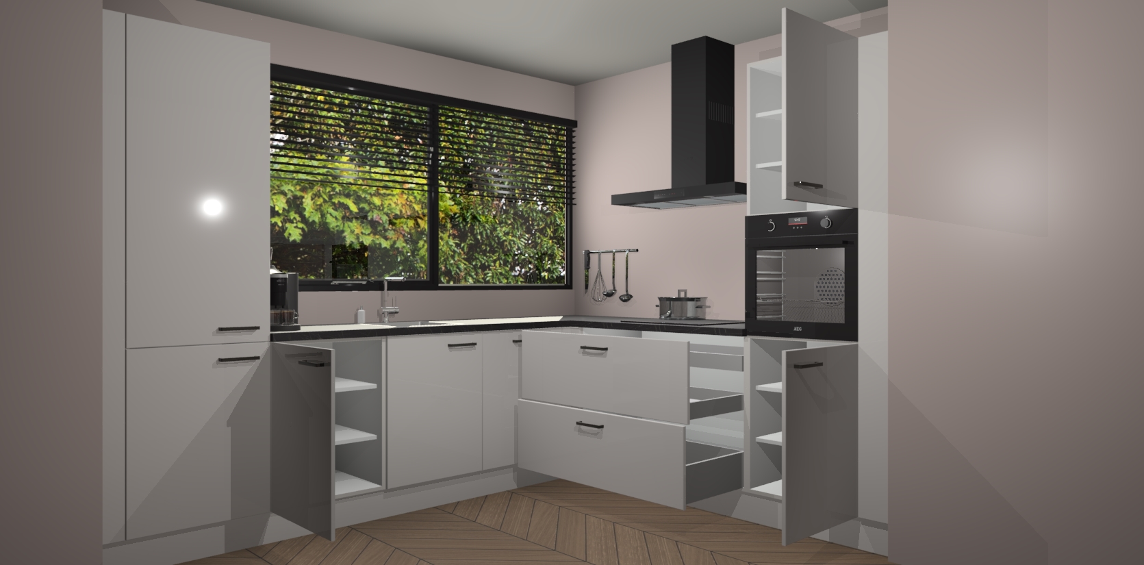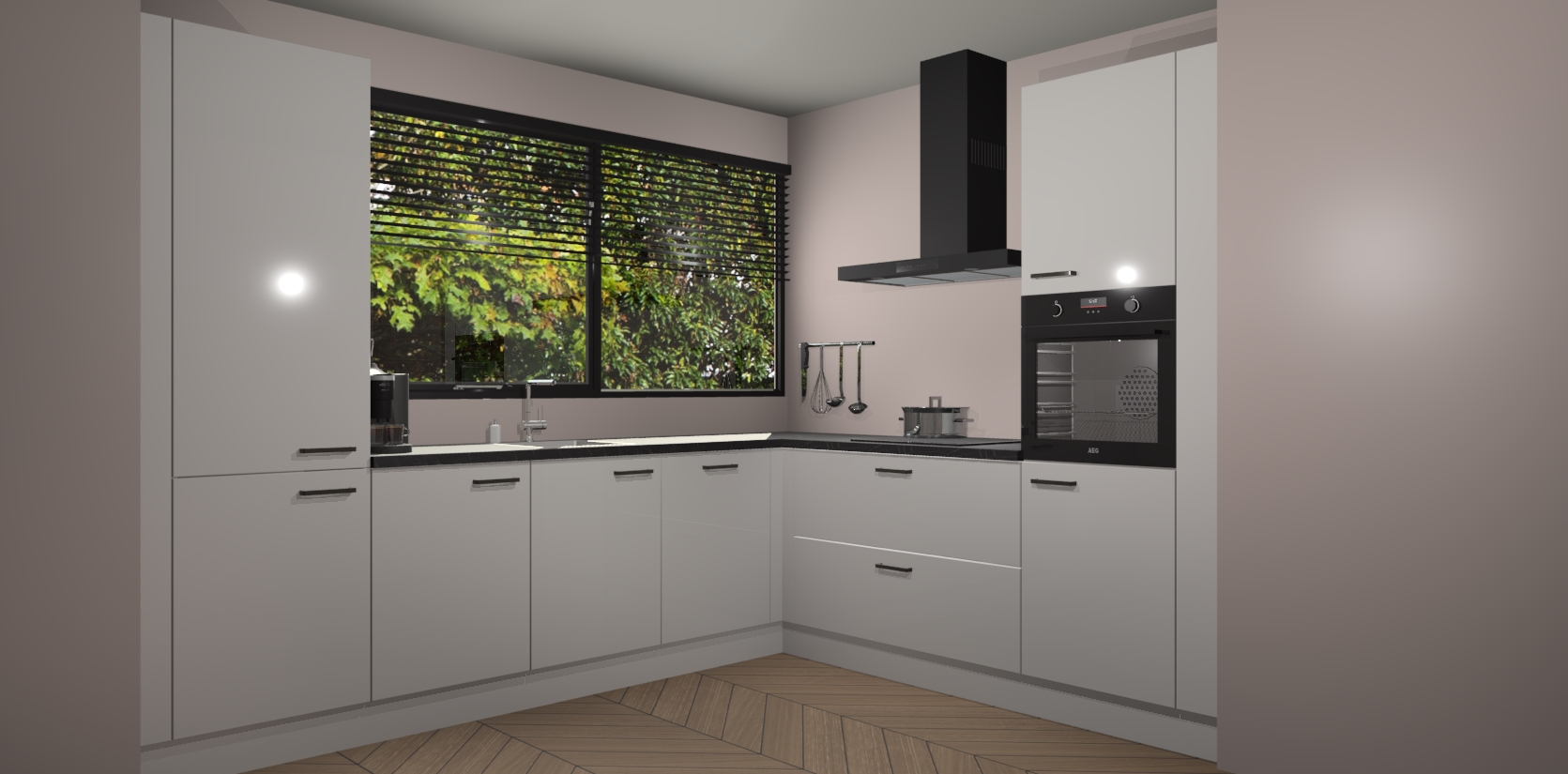 Met een modern, tijdloos design en ruime opslagruimte, zult u zich in no-time thuis voelen in uw nieuwe keuken. Uw leven wordt eenvoudiger met de soft-close deuren die voor het ultieme stille comfort zorgen - geen geluid dat u stoort terwijl u kookt. Ook is de keuken voorzien van 5 ingebouwde apparaten: een oven, inductie kookplaat, afzuigkap, vaatwasser en koelkast. Deze kunnen gemakkelijk na bestelling worden bijgewerkt naar AEG - waardoor uw luxe ervaring compleet is.