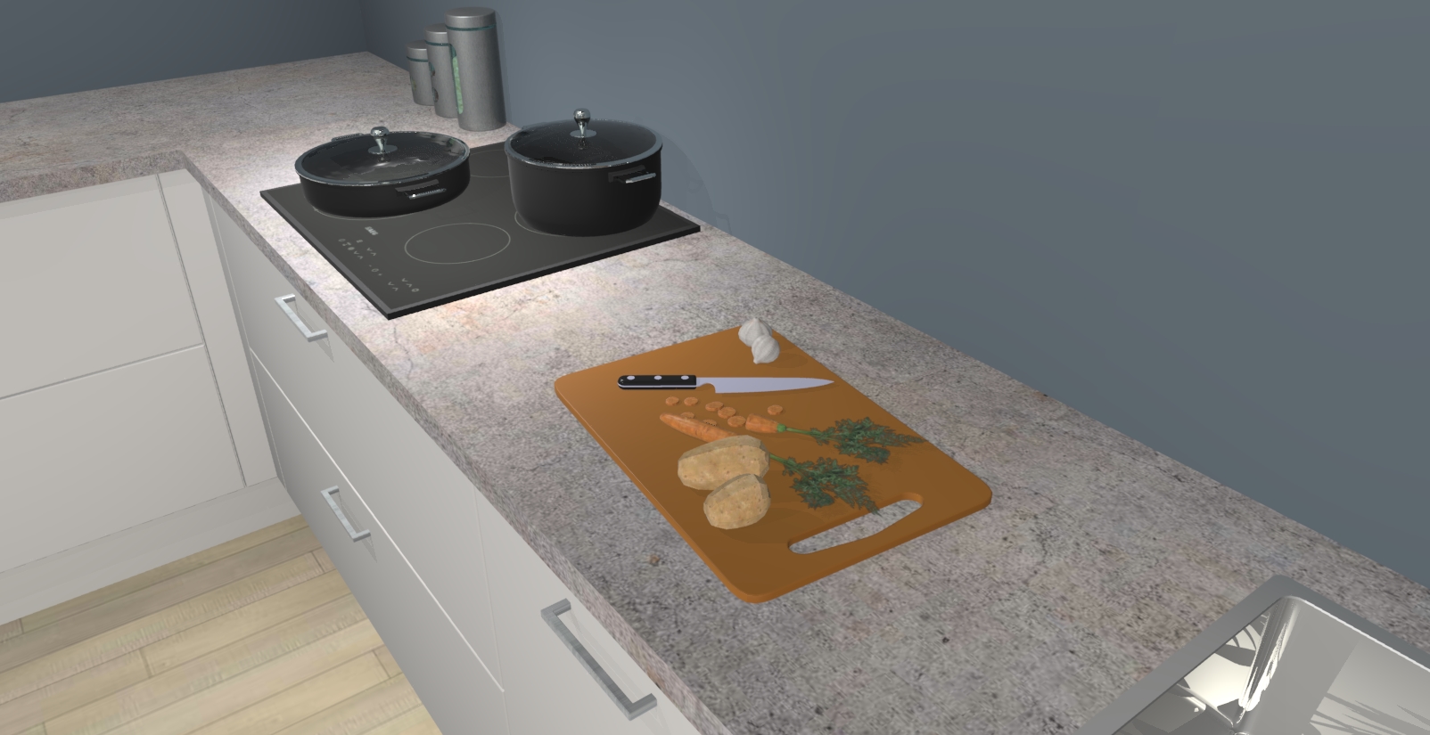 Inclusief plinten, stelpoten en werkblad