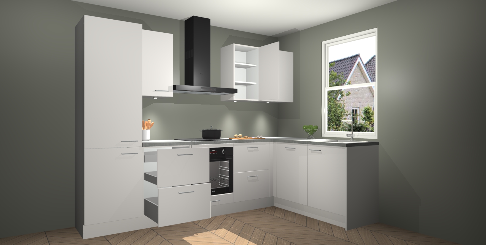 In deze box zijn alle kleuren verzameld van de deuren en werkbladen. Vraag de gratis kleurenbox aan en kijk thuis rustig verder!