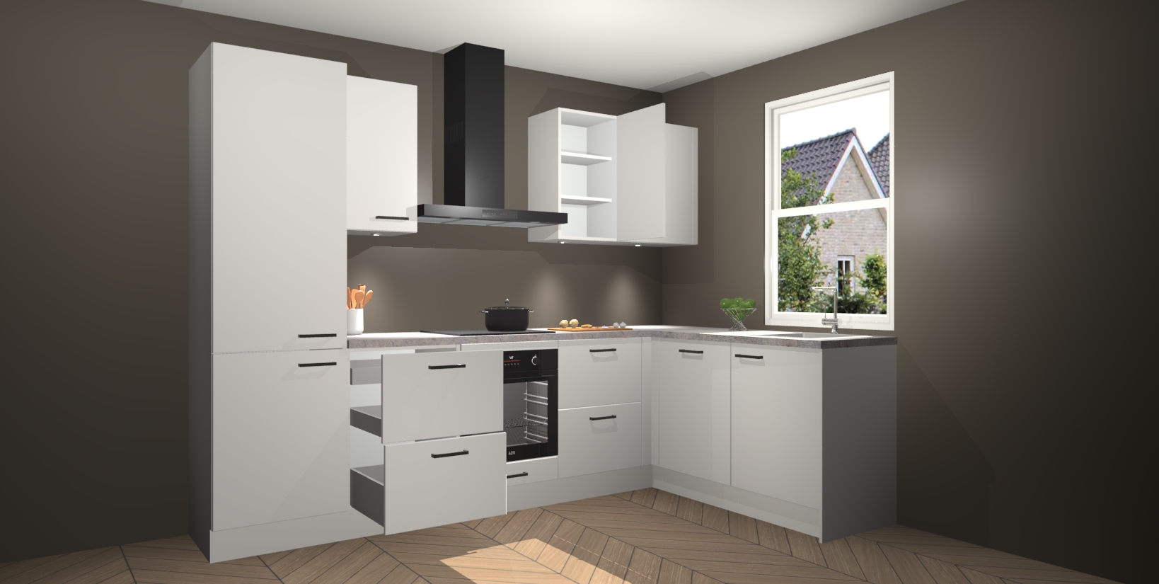 In deze box zijn alle kleuren verzameld van de deuren en werkbladen. Vraag de gratis kleurenbox aan en kijk thuis rustig verder!