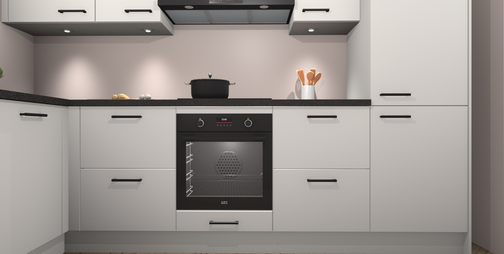 U hoeft zich ook geen zorgen te maken over een gebrek aan opbergruimte, want deze keuken heeft voldoende opbergmogelijkheden zowel boven als onder het aanrecht. Om het leven nog makkelijker te maken, wordt deze moderne hoekkeuken geleverd met 5 ingebouwde apparaten, waaronder een oven, inductiekookplaat, afzuigkap, vaatwasser en koelkast, zodat u in een mum van tijd klaar bent voor actie!