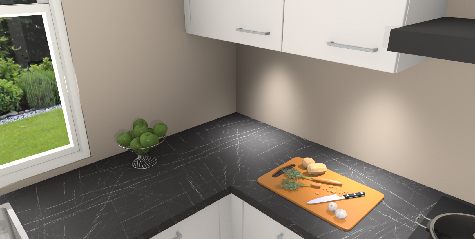 - Bij een hoekwerkblad zijn de hoeken in gevreesd en op maat gemaakt