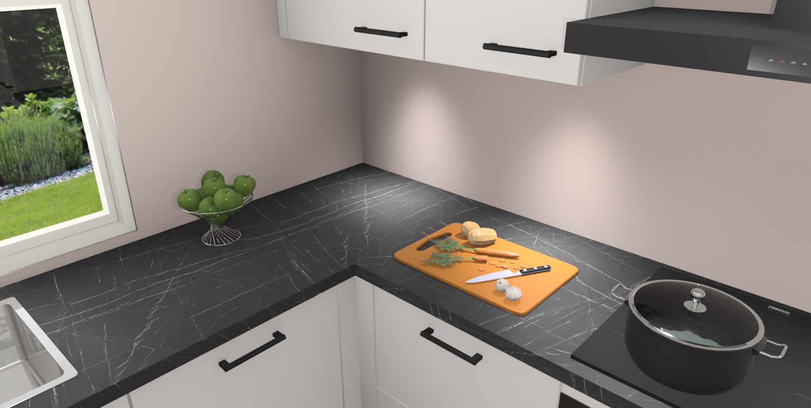 - Bij een hoekwerkblad zijn de hoeken in gevreesd en op maat gemaakt