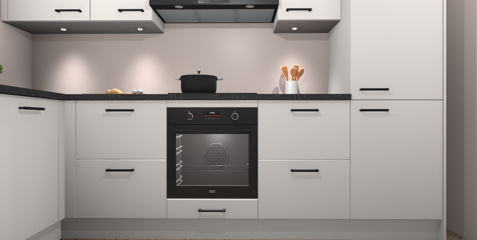 U hoeft zich ook geen zorgen te maken over een gebrek aan opbergruimte, want deze keuken heeft voldoende opbergmogelijkheden zowel boven als onder het aanrecht. Om het leven nog makkelijker te maken, wordt deze moderne hoekkeuken geleverd met 5 ingebouwde apparaten, waaronder een oven, inductiekookplaat, afzuigkap, vaatwasser en koelkast, zodat u in een mum van tijd klaar bent voor actie!