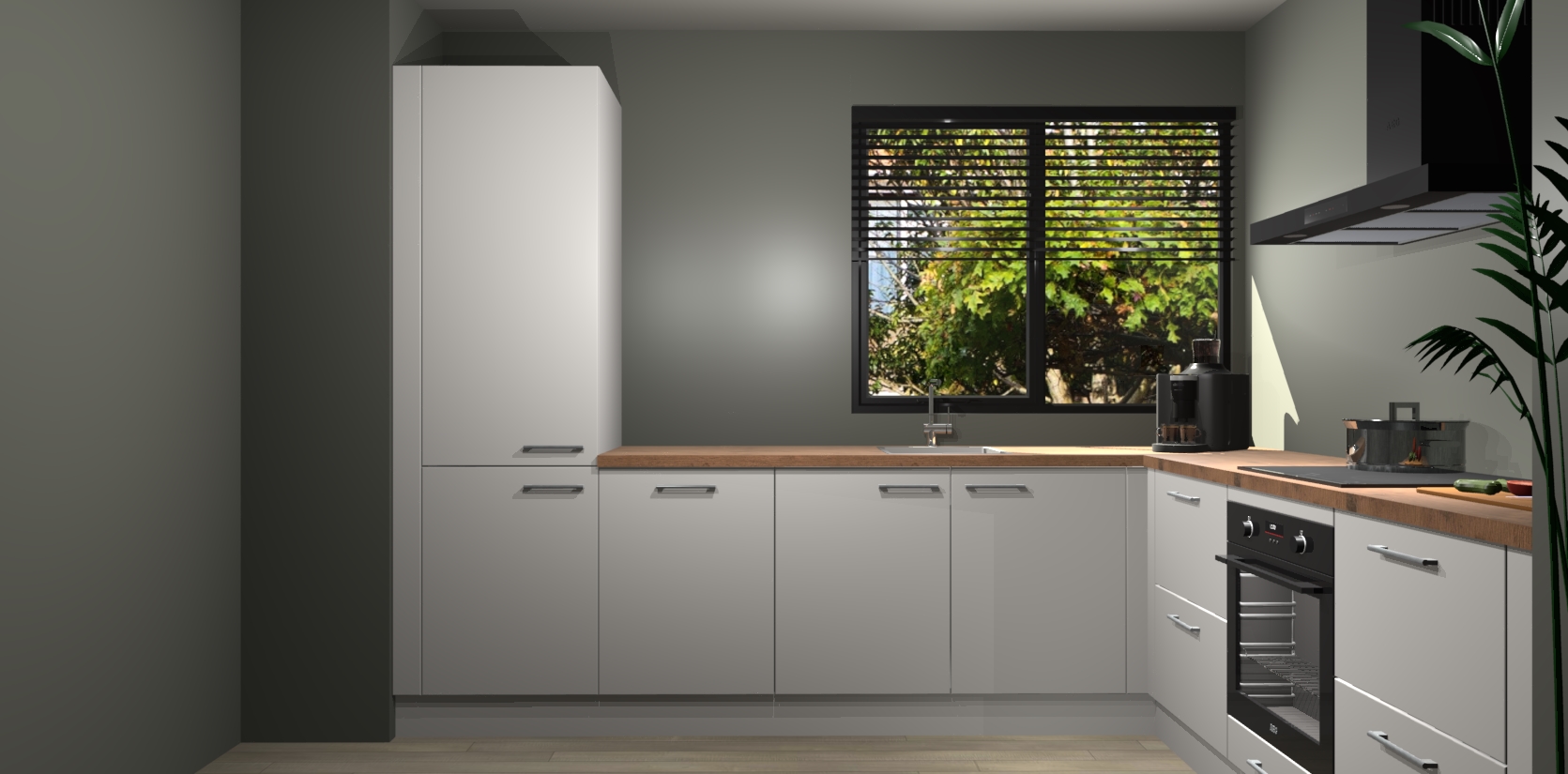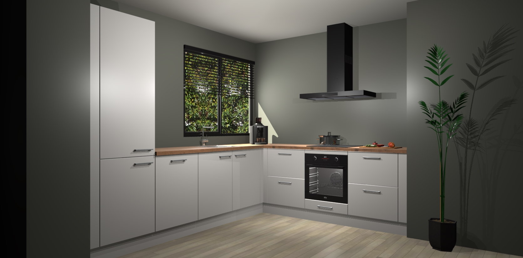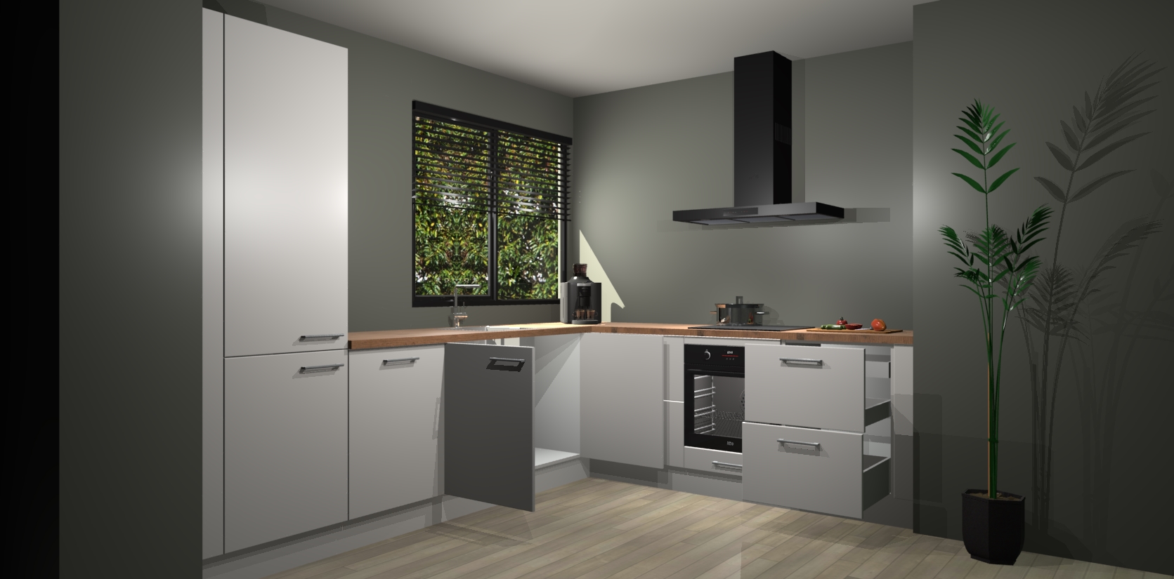 Met een modern, tijdloos design en ruime opslagruimte, zult u zich in no-time thuis voelen in uw nieuwe keuken. Uw leven wordt eenvoudiger met de soft-close deuren die voor het ultieme stille comfort zorgen - geen geluid dat u stoort terwijl u kookt. Ook is de keuken voorzien van 5 ingebouwde apparaten: een oven, inductie kookplaat, afzuigkap, vaatwasser en koelkast. Deze kunnen gemakkelijk na bestelling worden bijgewerkt naar AEG - waardoor uw luxe ervaring compleet is.