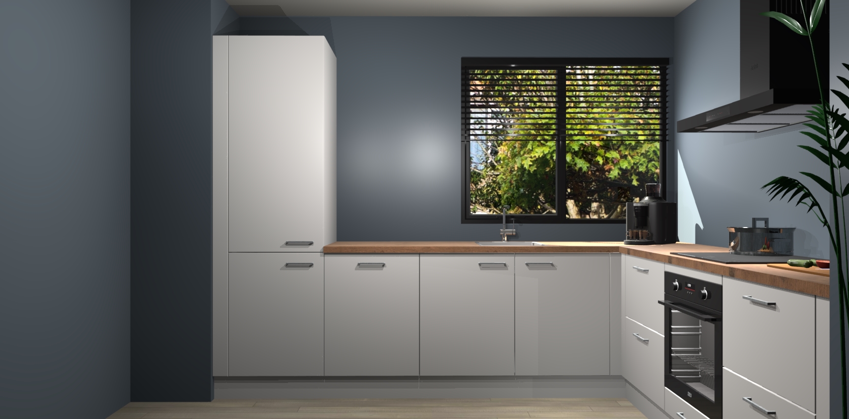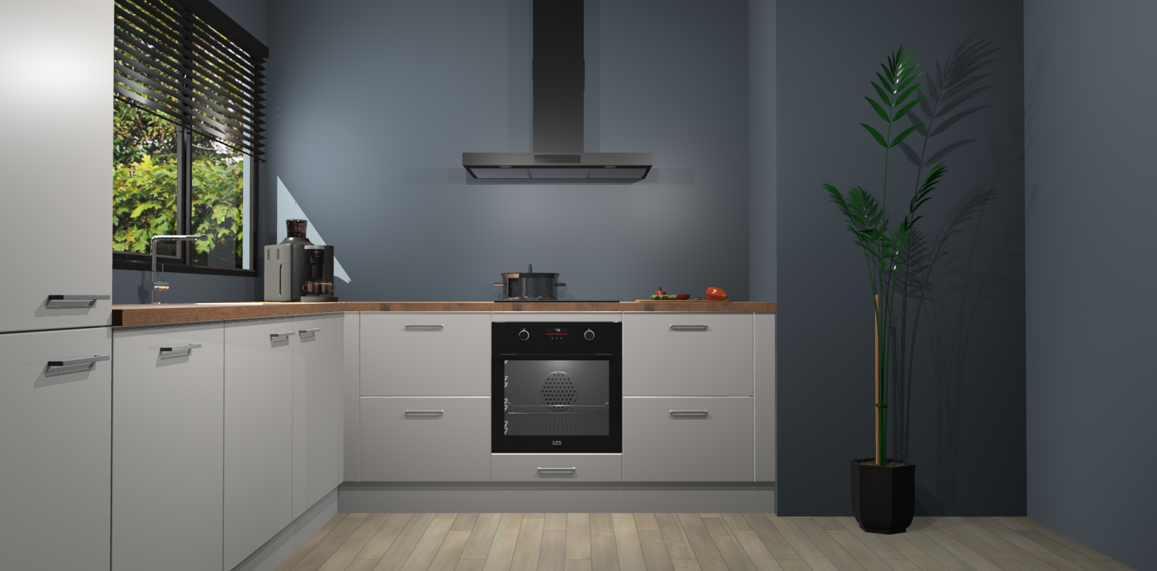 Met een modern, tijdloos design en ruime opslagruimte, zult u zich in no-time thuis voelen in uw nieuwe keuken. Uw leven wordt eenvoudiger met de soft-close deuren die voor het ultieme stille comfort zorgen - geen geluid dat u stoort terwijl u kookt. Ook is de keuken voorzien van 5 ingebouwde apparaten: een oven, inductie kookplaat, afzuigkap, vaatwasser en koelkast. Deze kunnen gemakkelijk na bestelling worden bijgewerkt naar AEG - waardoor uw luxe ervaring compleet is.