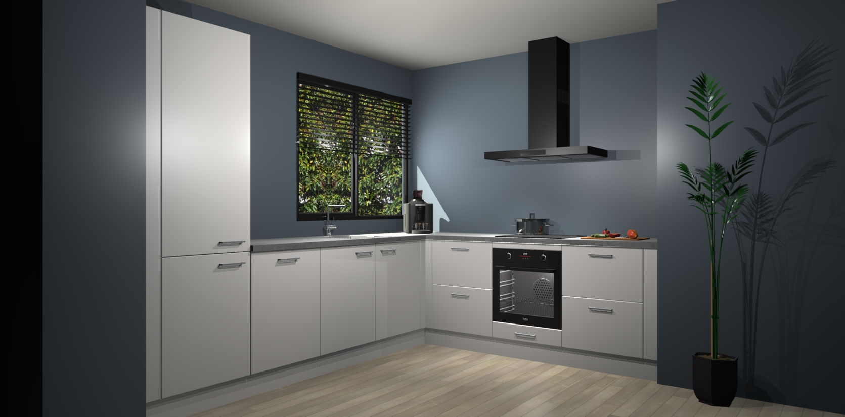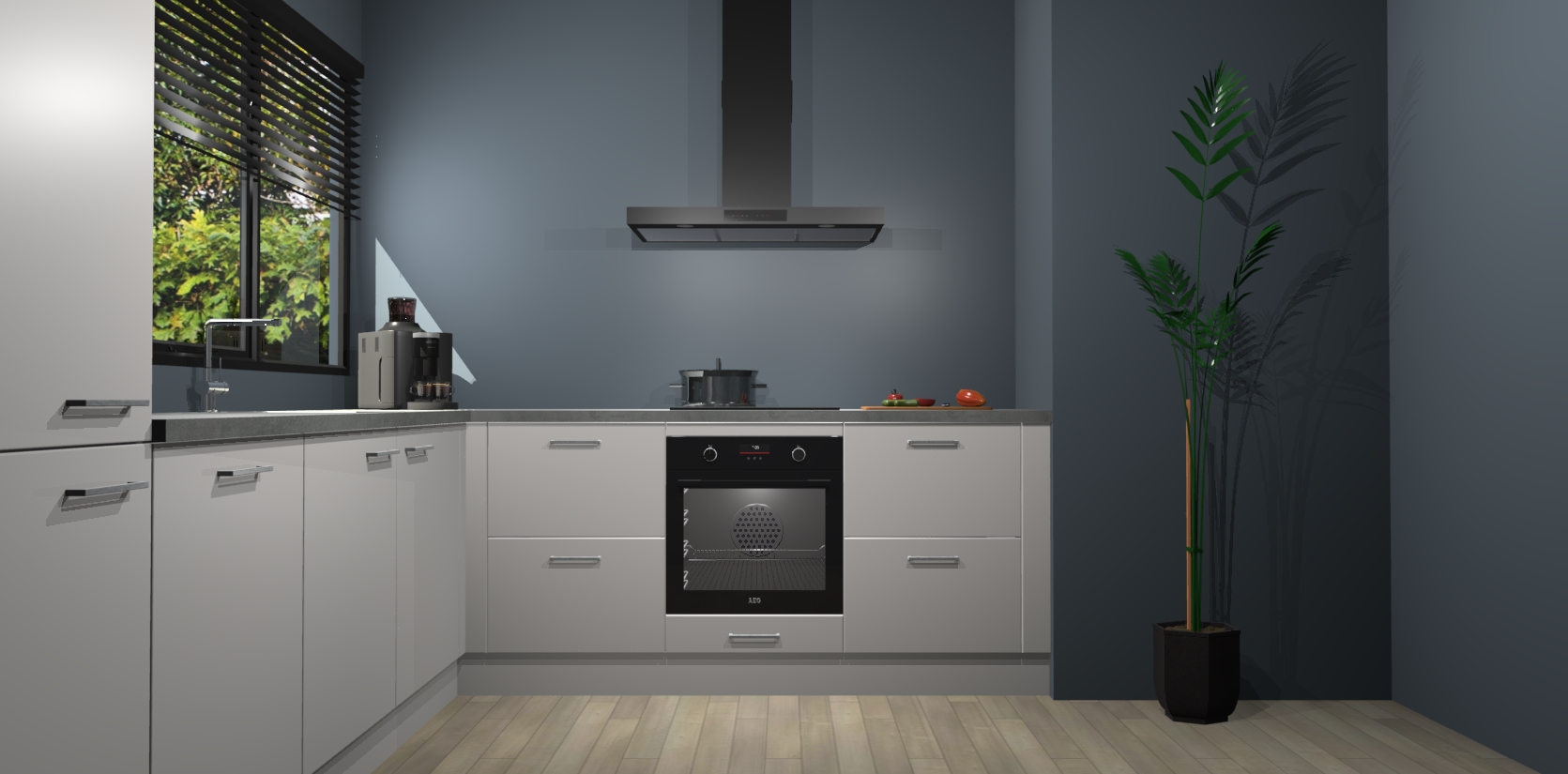Met een modern, tijdloos design en ruime opslagruimte, zult u zich in no-time thuis voelen in uw nieuwe keuken. Uw leven wordt eenvoudiger met de soft-close deuren die voor het ultieme stille comfort zorgen - geen geluid dat u stoort terwijl u kookt. Ook is de keuken voorzien van 5 ingebouwde apparaten: een oven, inductie kookplaat, afzuigkap, vaatwasser en koelkast. Deze kunnen gemakkelijk na bestelling worden bijgewerkt naar AEG - waardoor uw luxe ervaring compleet is.