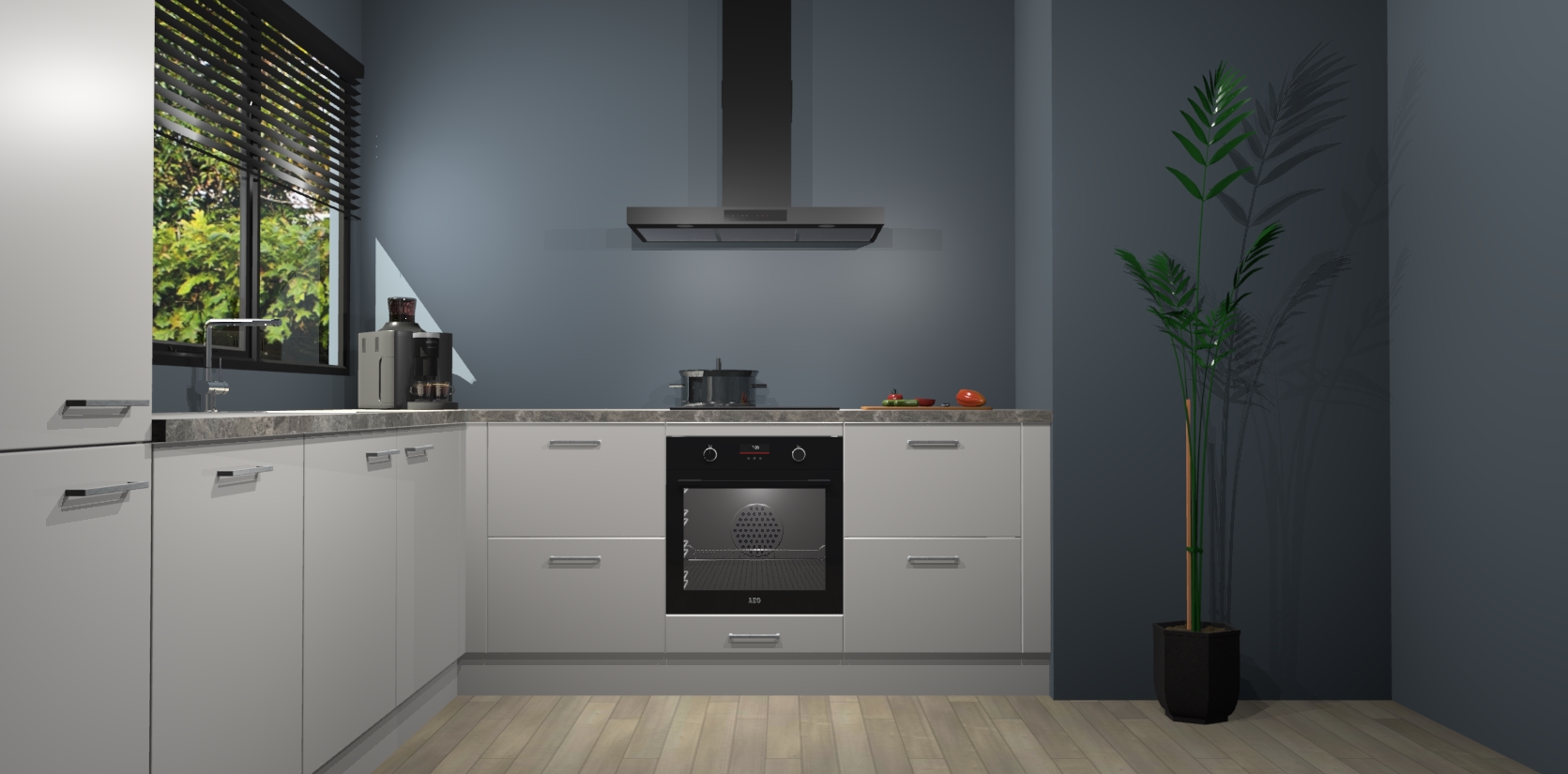 Met een modern, tijdloos design en ruime opslagruimte, zult u zich in no-time thuis voelen in uw nieuwe keuken. Uw leven wordt eenvoudiger met de soft-close deuren die voor het ultieme stille comfort zorgen - geen geluid dat u stoort terwijl u kookt. Ook is de keuken voorzien van 5 ingebouwde apparaten: een oven, inductie kookplaat, afzuigkap, vaatwasser en koelkast. Deze kunnen gemakkelijk na bestelling worden bijgewerkt naar AEG - waardoor uw luxe ervaring compleet is.