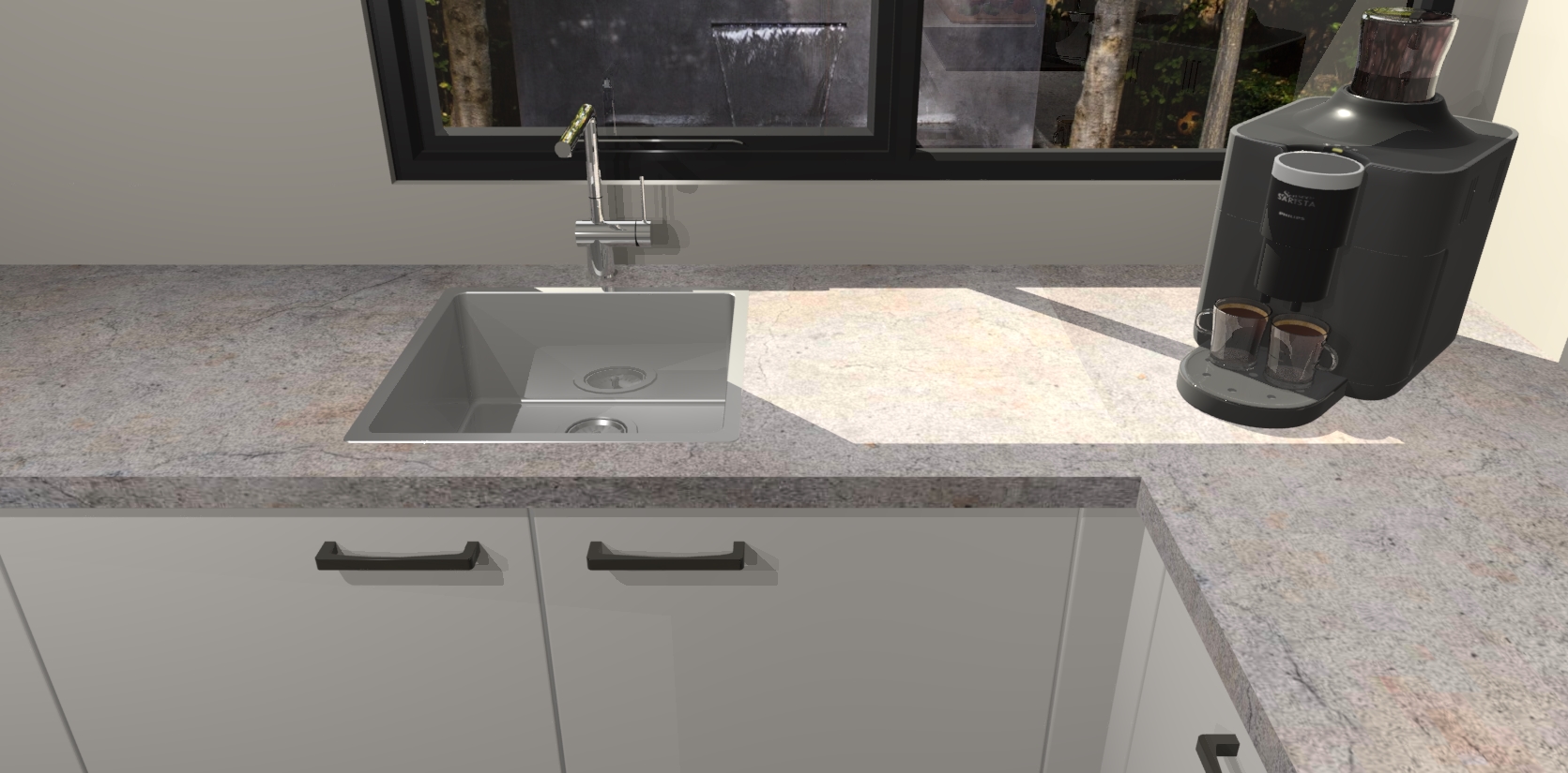 - De spoelbak is nog niet in gevreesd. Dit dient tijdens het werk gedaan te worden