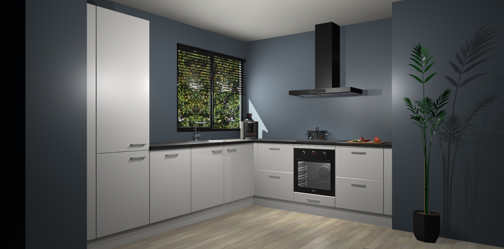 Met een modern, tijdloos design en ruime opslagruimte, zult u zich in no-time thuis voelen in uw nieuwe keuken. Uw leven wordt eenvoudiger met de soft-close deuren die voor het ultieme stille comfort zorgen - geen geluid dat u stoort terwijl u kookt. Ook is de keuken voorzien van 5 ingebouwde apparaten: een oven, inductie kookplaat, afzuigkap, vaatwasser en koelkast. Deze kunnen gemakkelijk na bestelling worden bijgewerkt naar AEG - waardoor uw luxe ervaring compleet is.