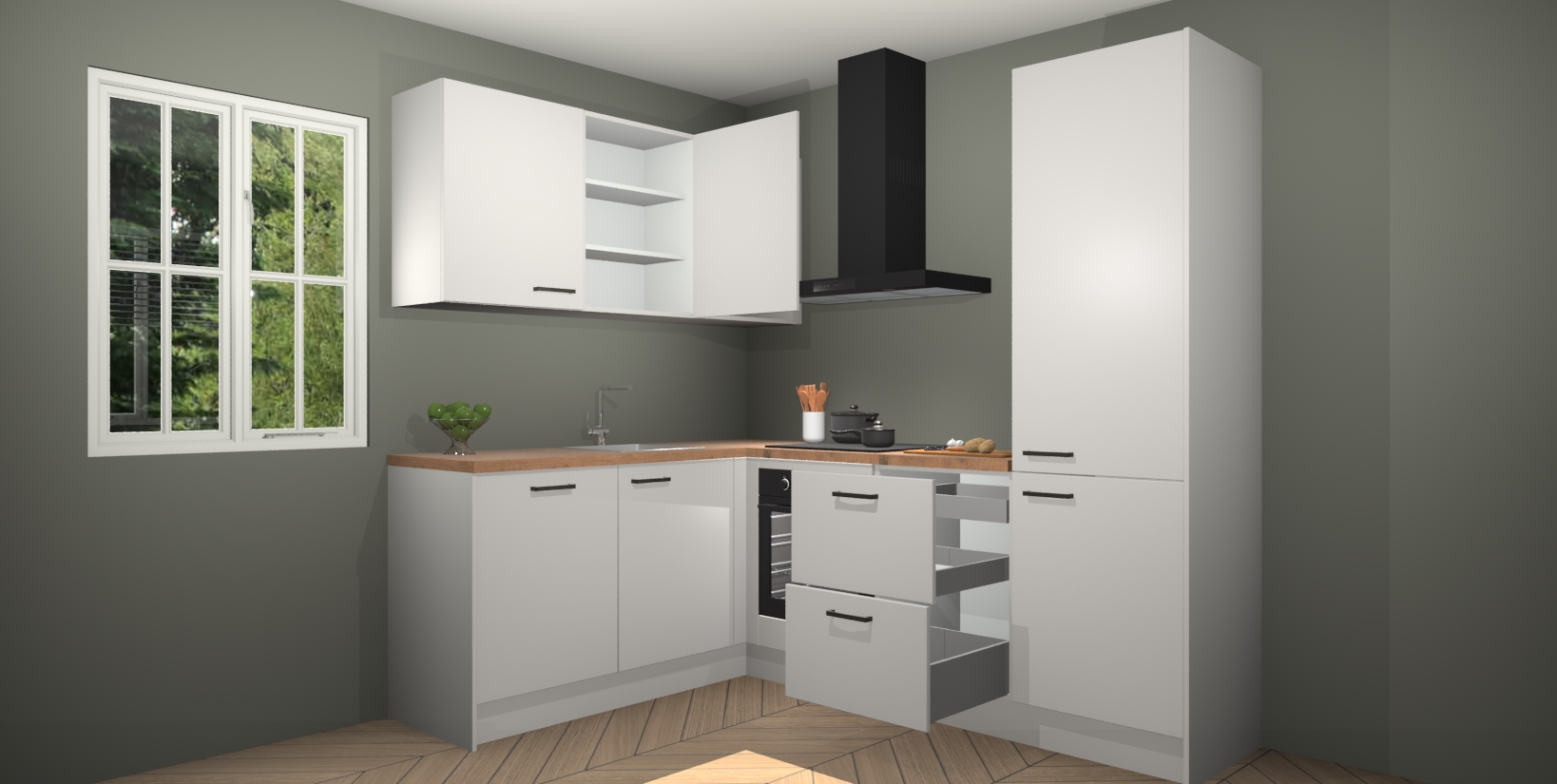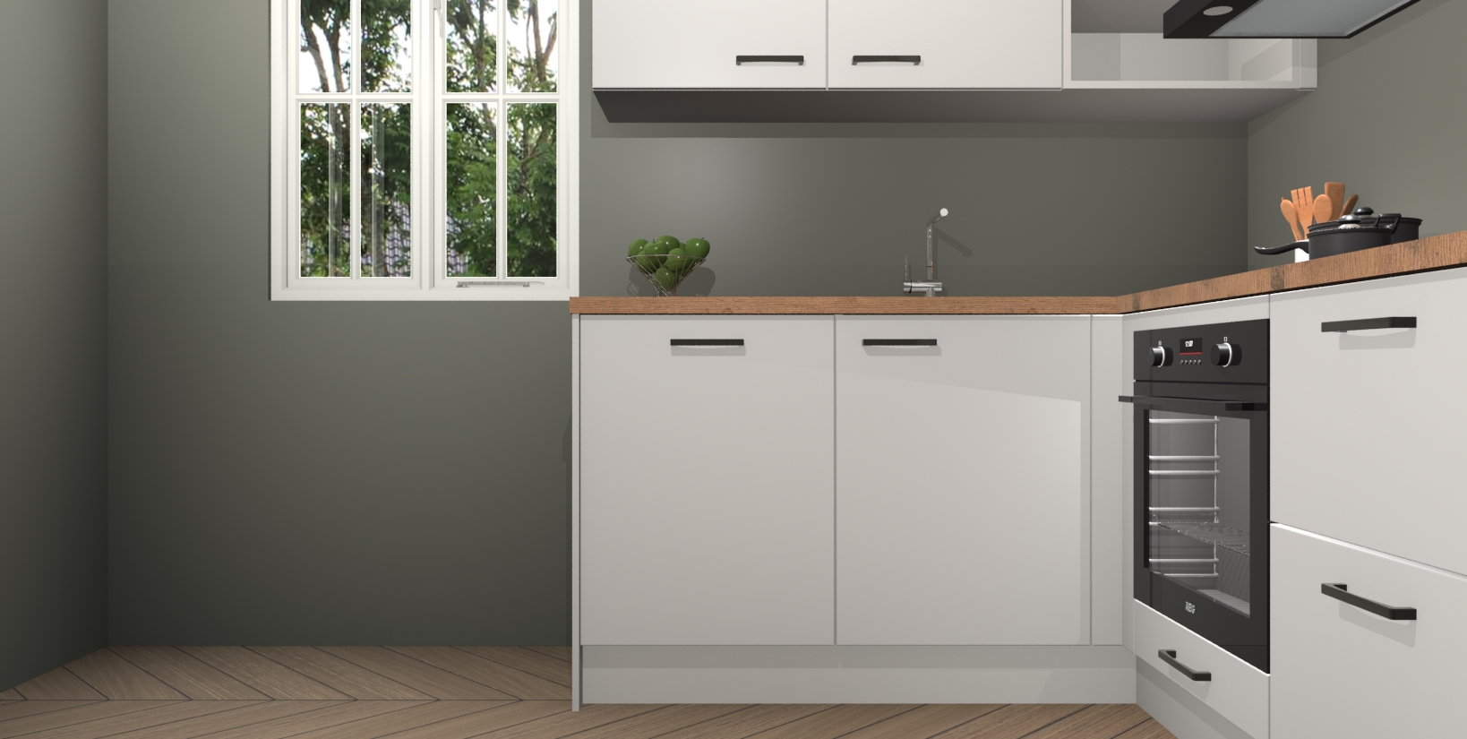 Inclusief plinten, stelpoten en werkblad