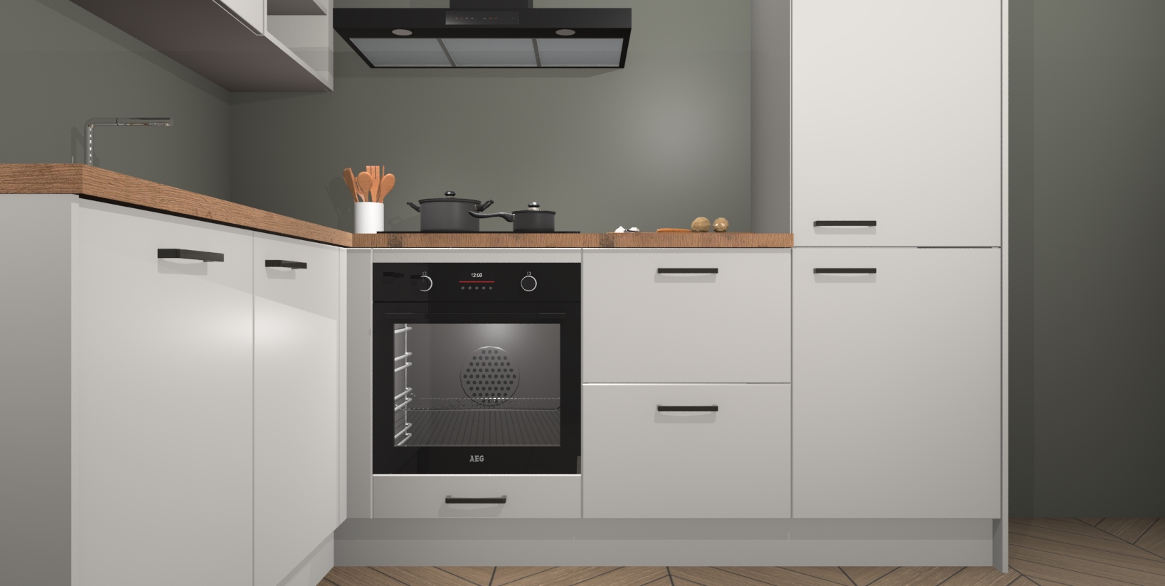 Voor nog meer gemak heeft deze keuken vijf ingebouwde apparaten - oven, inductiekookplaat, afzuigkap, vaatwasser en koelkast. Bovendien hebben alle kasten softclose deuren voor extra comfort bij het sluiten. Dit alles voor een verrassend lage vaste prijs - u vindt nergens anders een betere deal!