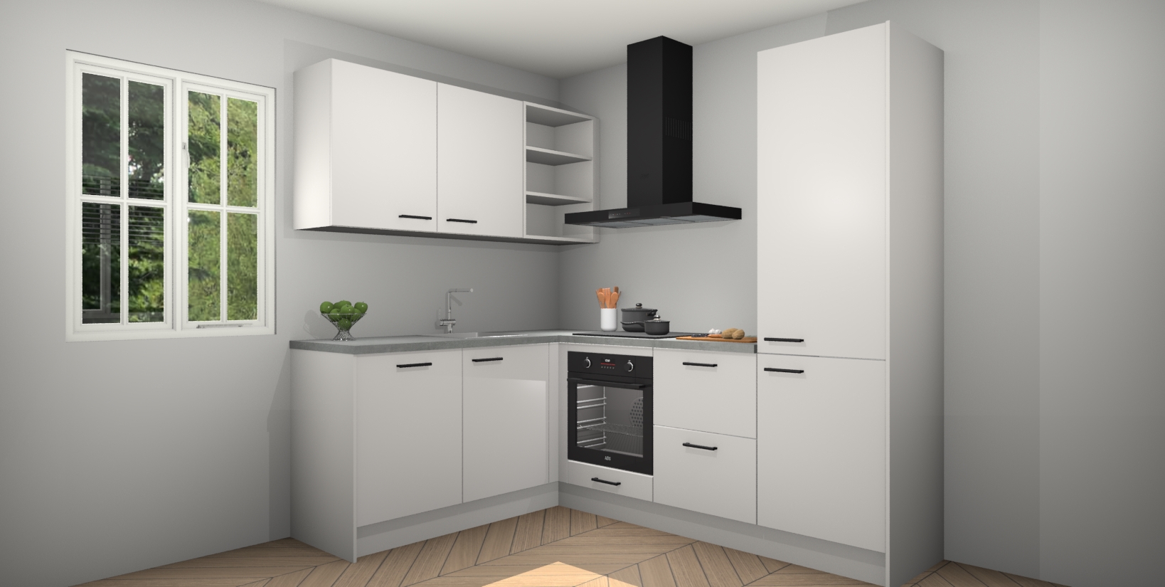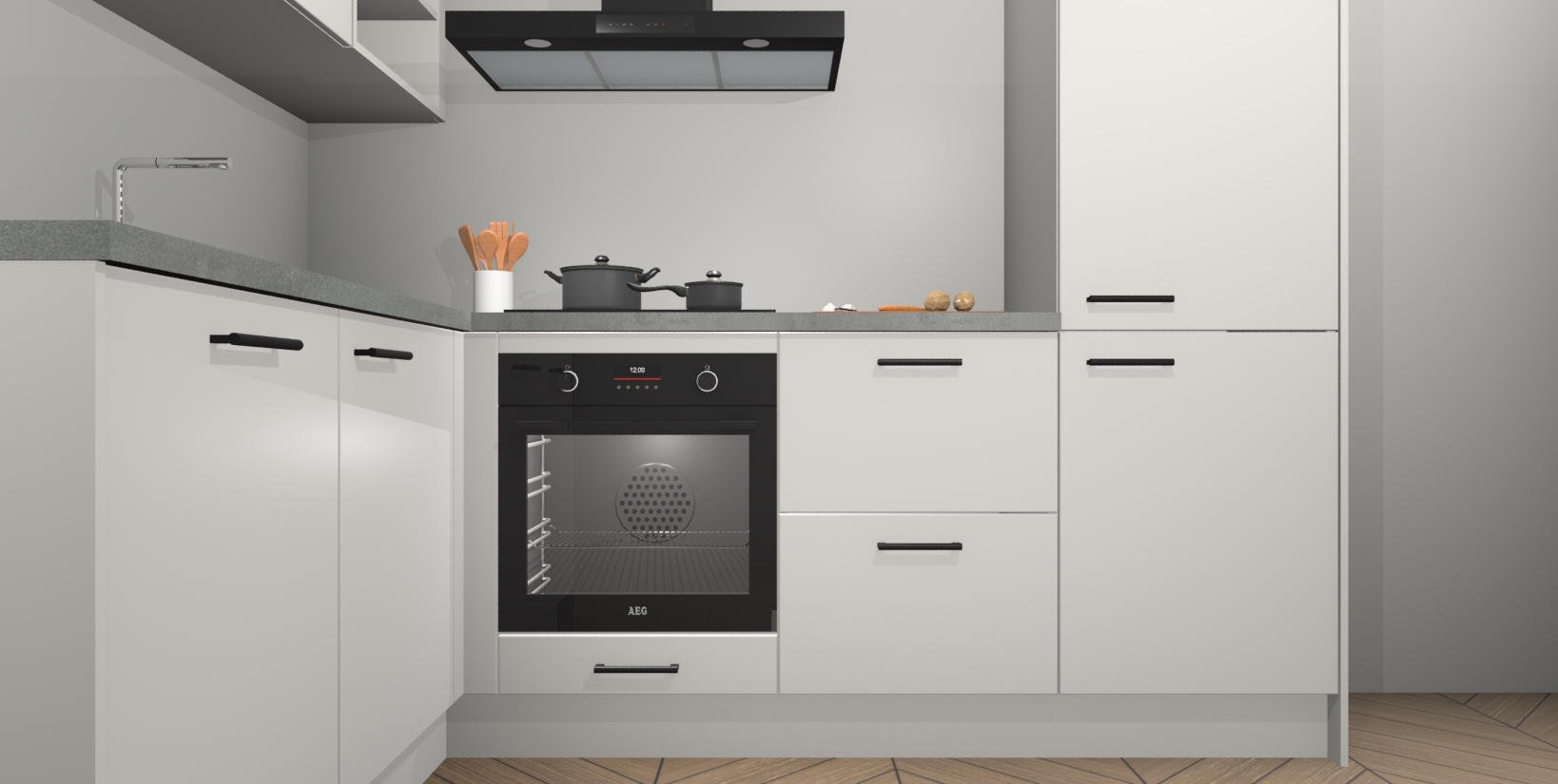 Voor nog meer gemak heeft deze keuken vijf ingebouwde apparaten - oven, inductiekookplaat, afzuigkap, vaatwasser en koelkast. Bovendien hebben alle kasten softclose deuren voor extra comfort bij het sluiten. Dit alles voor een verrassend lage vaste prijs - u vindt nergens anders een betere deal!