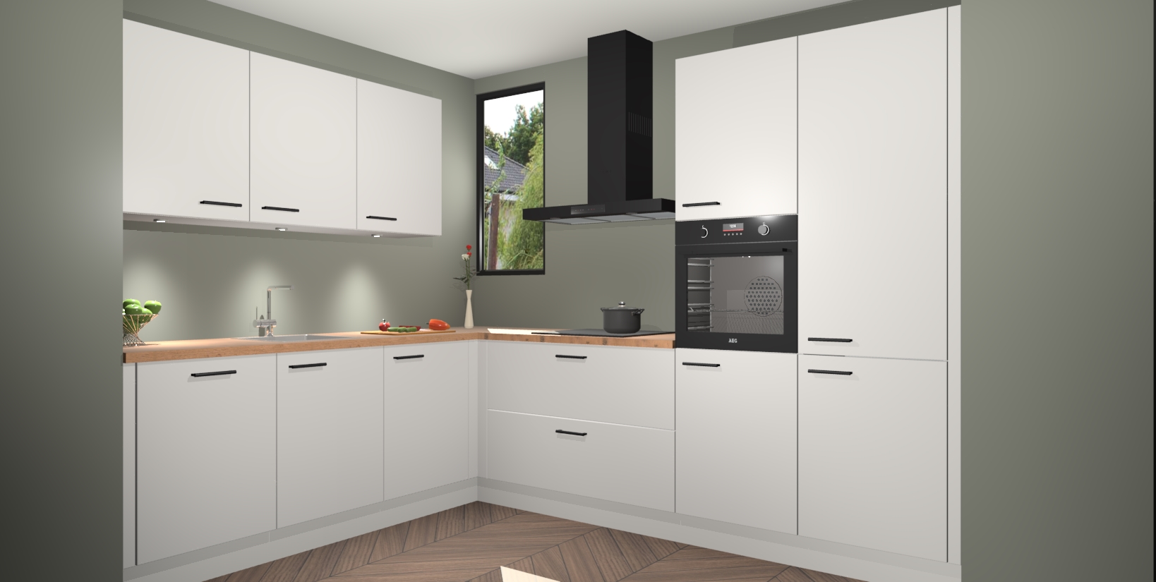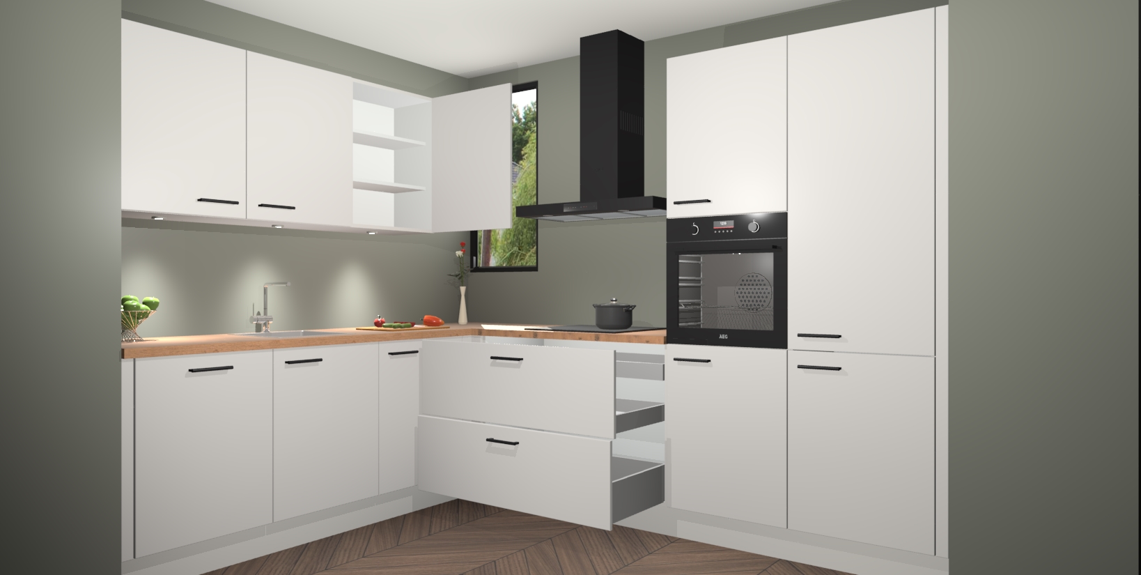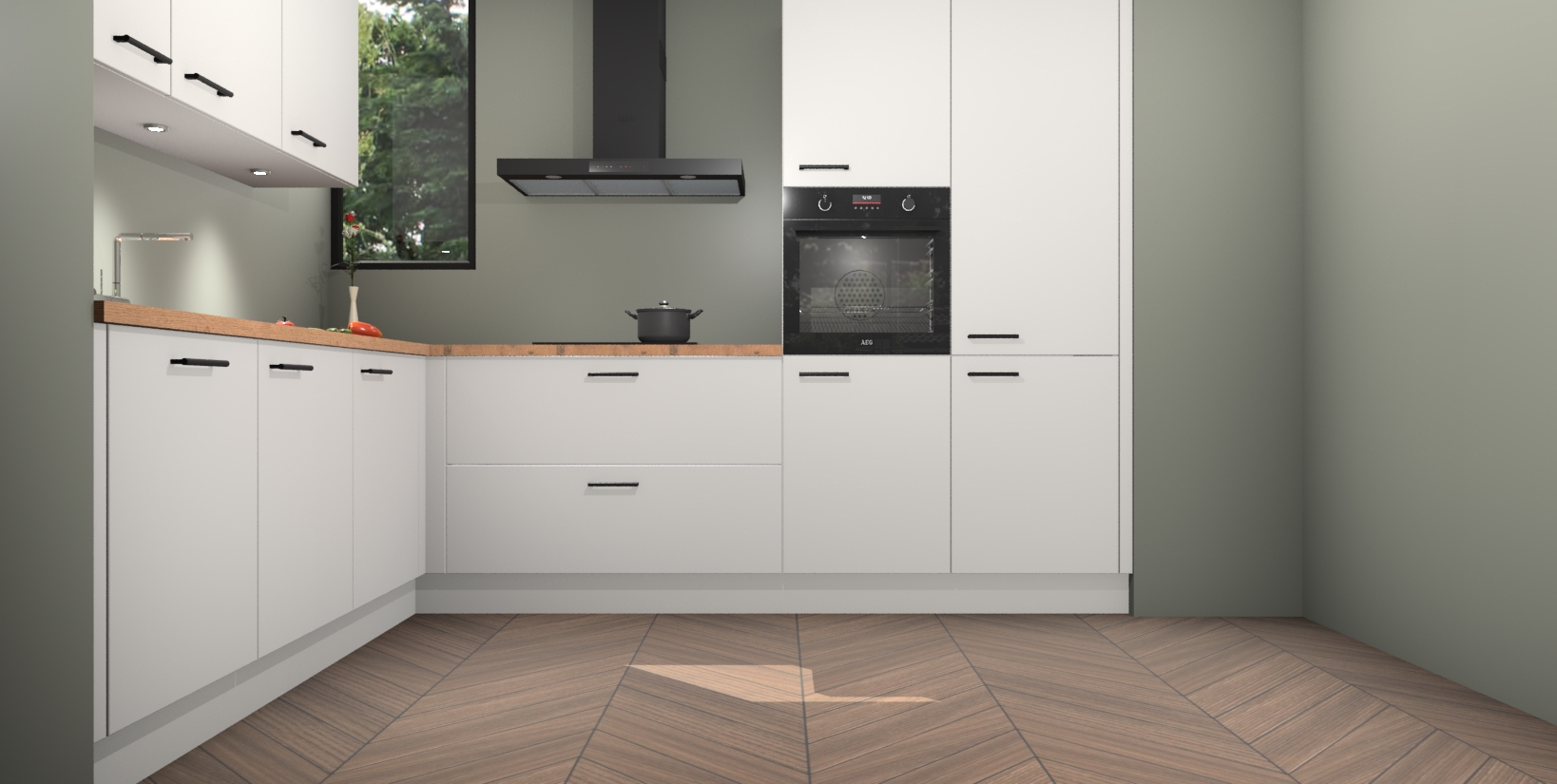 De ruime opbergruimte van dit model maakt het bereiden van voedsel en het gebruik van apparaten snel en gemakkelijk. Het beste van alles is dat het wordt geleverd met vijf inbouwapparaten: een oven, inductiekookplaat, afzuigkap, vaatwasser en koelkast - die allemaal gemakkelijk kunnen worden opgewaardeerd naar AEG na aankoop. Wat de gemaksfactor nog groter maakt, is het feit dat alle cabines voorgemonteerd worden geleverd, zodat u er meteen mee aan de slag kunt!