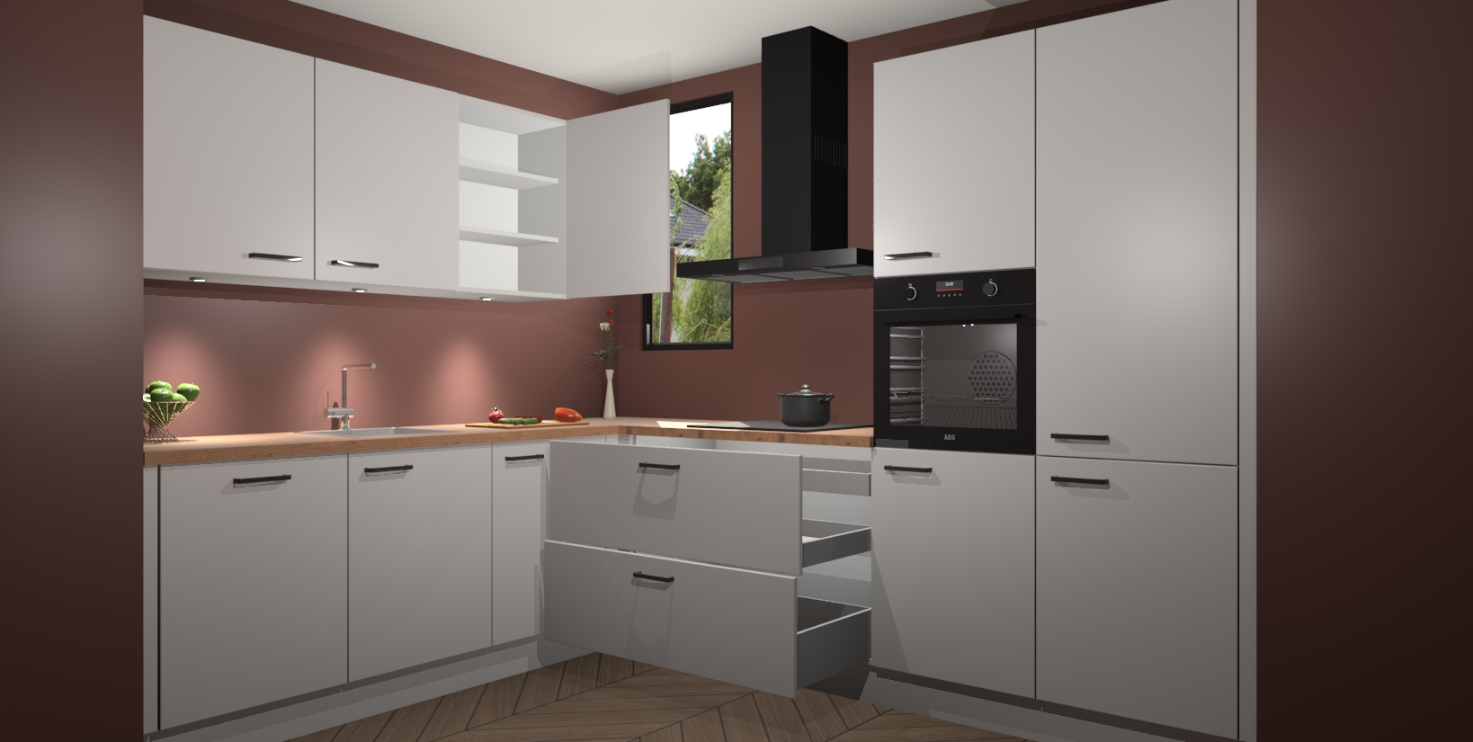 De ruime opbergruimte van dit model maakt het bereiden van voedsel en het gebruik van apparaten snel en gemakkelijk. Het beste van alles is dat het wordt geleverd met vijf inbouwapparaten: een oven, inductiekookplaat, afzuigkap, vaatwasser en koelkast - die allemaal gemakkelijk kunnen worden opgewaardeerd naar AEG na aankoop. Wat de gemaksfactor nog groter maakt, is het feit dat alle cabines voorgemonteerd worden geleverd, zodat u er meteen mee aan de slag kunt!