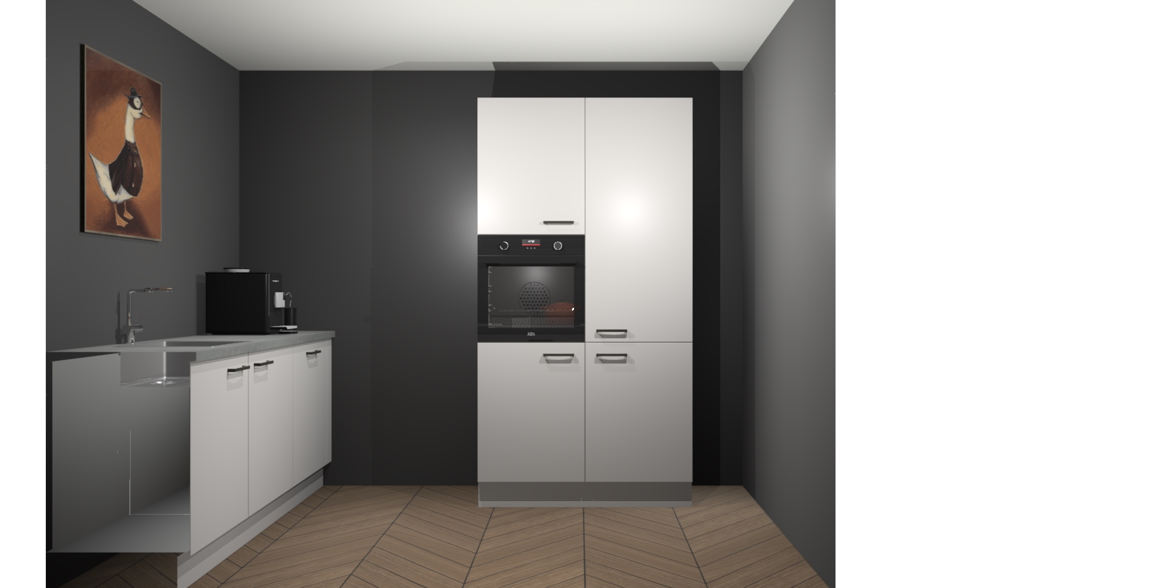 Met een modern, tijdloos design en ruime opslagruimte, zult u zich in no-time thuis voelen in uw nieuwe keuken. Uw leven wordt eenvoudiger met de soft-close deuren die voor het ultieme stille comfort zorgen - geen geluid dat u stoort terwijl u kookt. Ook is de keuken voorzien van 5 ingebouwde apparaten: een oven, inductie kookplaat, afzuigkap, vaatwasser en koelkast. Deze kunnen gemakkelijk na bestelling worden bijgewerkt naar AEG - waardoor uw luxe ervaring compleet is.