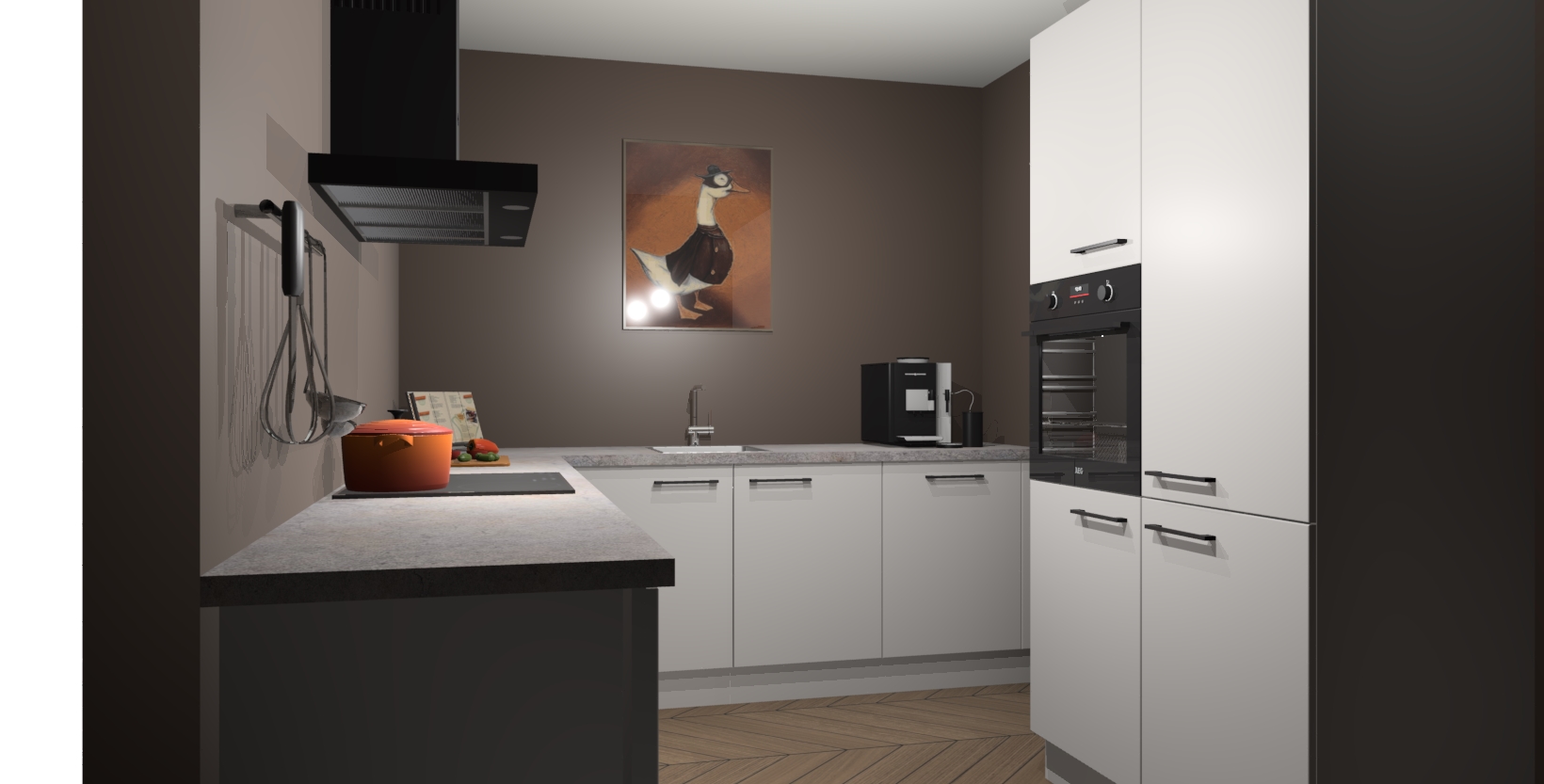 Met een modern, tijdloos design en ruime opslagruimte, zult u zich in no-time thuis voelen in uw nieuwe keuken. Uw leven wordt eenvoudiger met de soft-close deuren die voor het ultieme stille comfort zorgen - geen geluid dat u stoort terwijl u kookt. Ook is de keuken voorzien van 5 ingebouwde apparaten: een oven, inductie kookplaat, afzuigkap, vaatwasser en koelkast. Deze kunnen gemakkelijk na bestelling worden bijgewerkt naar AEG - waardoor uw luxe ervaring compleet is.