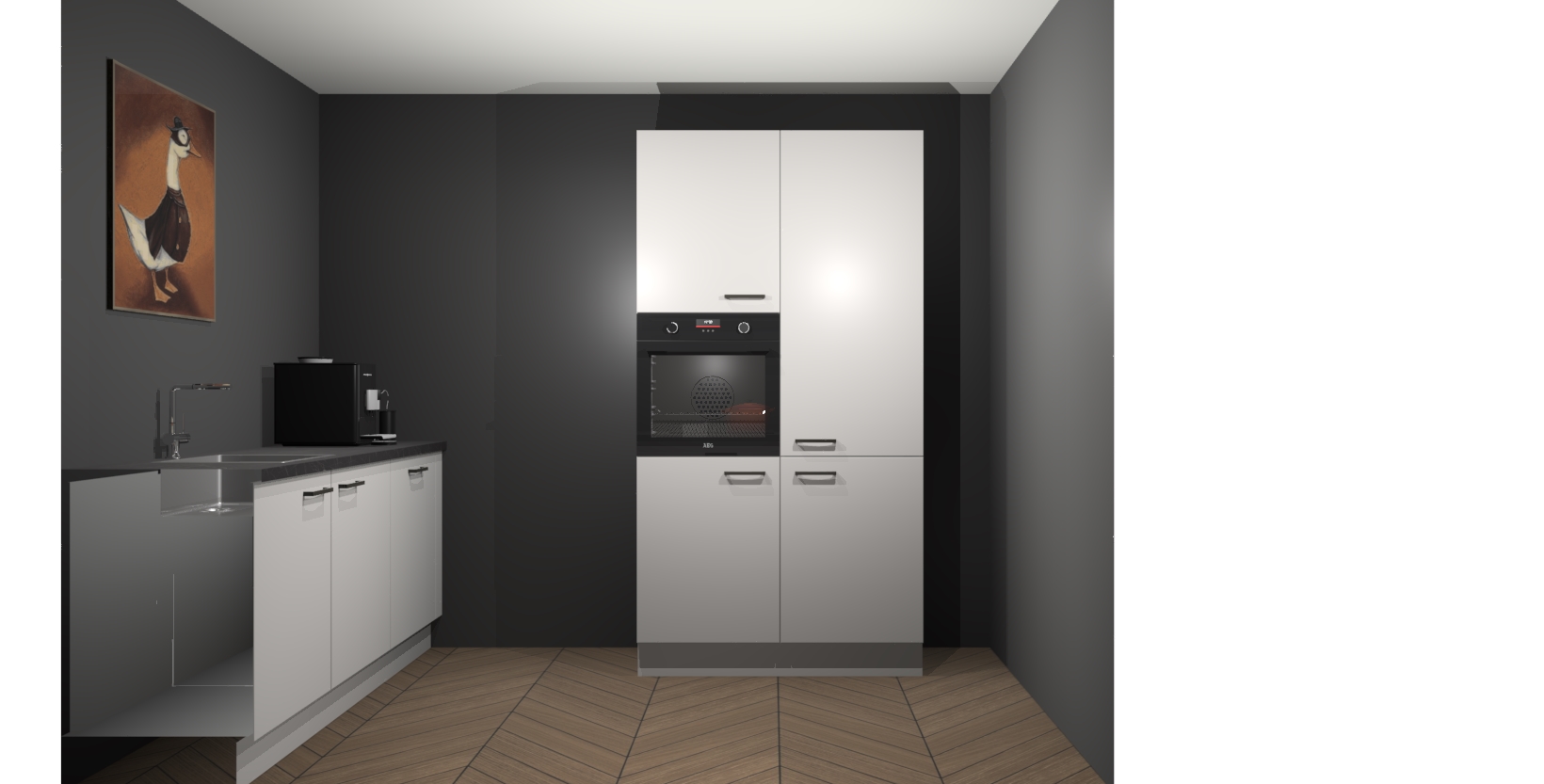 Met een modern, tijdloos design en ruime opslagruimte, zult u zich in no-time thuis voelen in uw nieuwe keuken. Uw leven wordt eenvoudiger met de soft-close deuren die voor het ultieme stille comfort zorgen - geen geluid dat u stoort terwijl u kookt. Ook is de keuken voorzien van 5 ingebouwde apparaten: een oven, inductie kookplaat, afzuigkap, vaatwasser en koelkast. Deze kunnen gemakkelijk na bestelling worden bijgewerkt naar AEG - waardoor uw luxe ervaring compleet is.