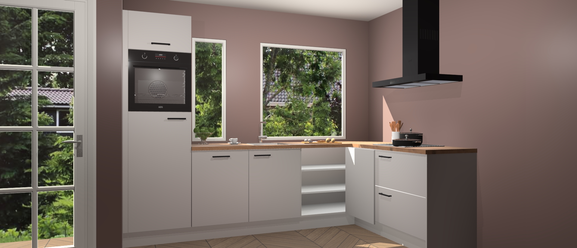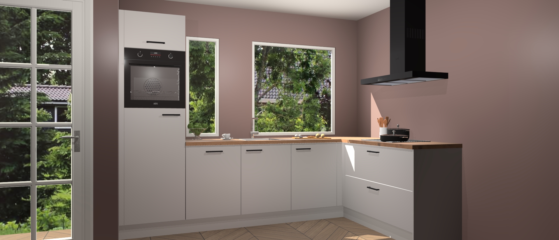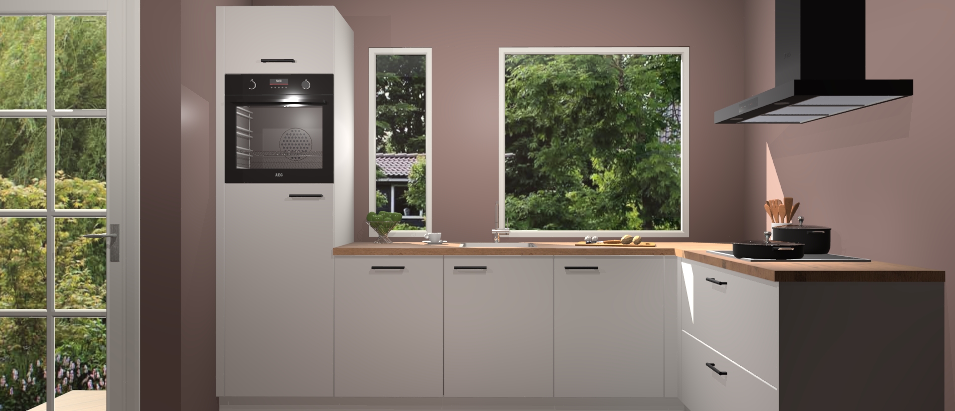Deze complete keuken wordt geleverd met 5 inbouwapparaten: een oven, inductiekookplaat, afzuigkap, vaatwasser en koelkast. De toestellen kunnen na bestelling ook gemakkelijk worden opgewaardeerd naar AEG. Bovendien is elke deur in deze keuken voorzien van handige softclose technologie voor eenvoudig gebruik! Als een leuke toevoeging zit in deze keuken ook een carrousel, zo hoef je niet meer de hoek in duiken om iets te pakken.