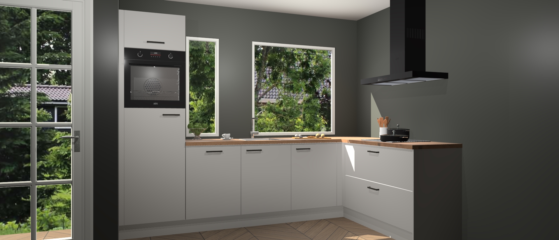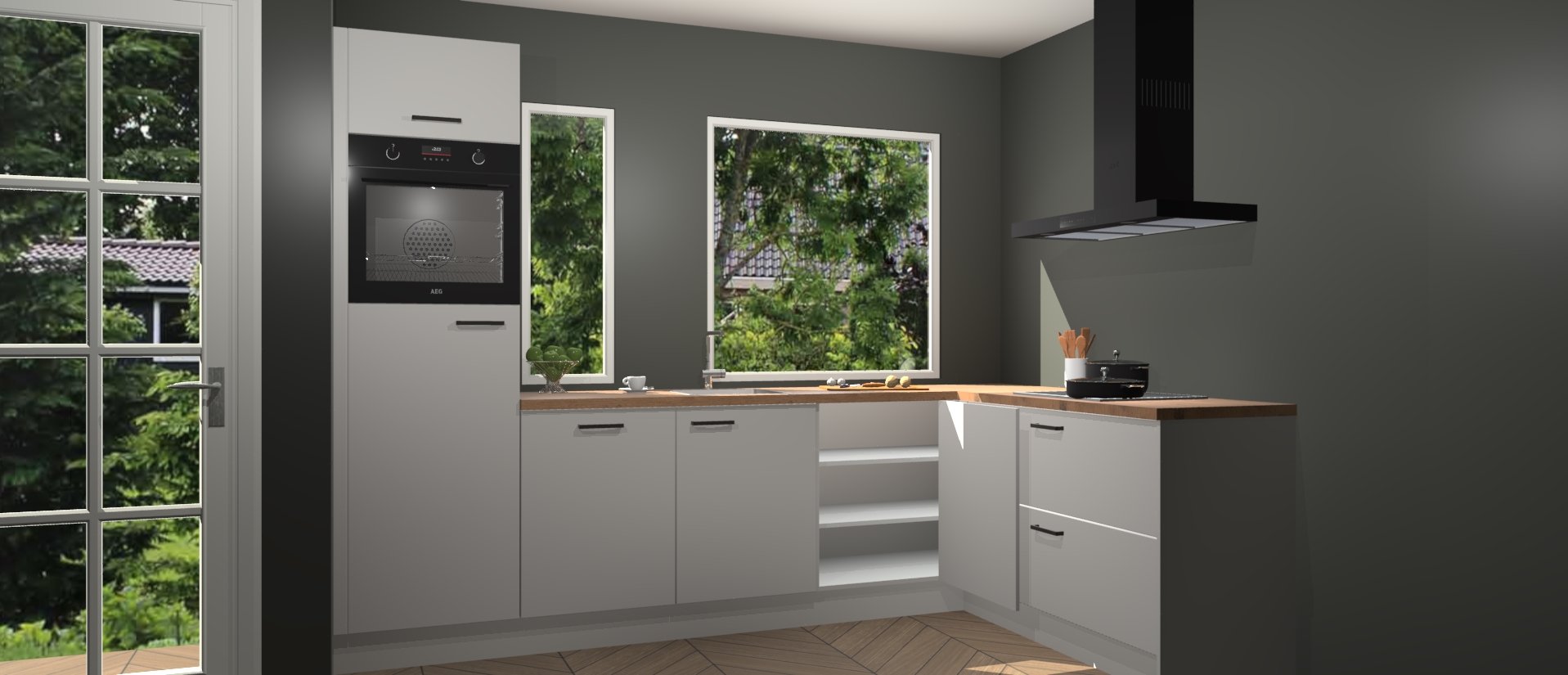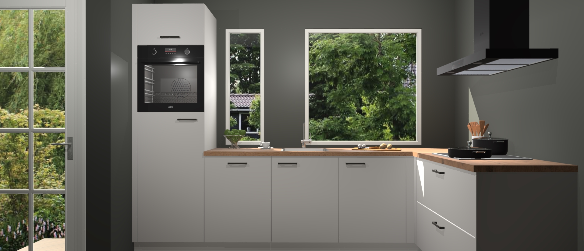 Deze complete keuken wordt geleverd met 5 inbouwapparaten: een oven, inductiekookplaat, afzuigkap, vaatwasser en koelkast. De toestellen kunnen na bestelling ook gemakkelijk worden opgewaardeerd naar AEG. Bovendien is elke deur in deze keuken voorzien van handige softclose technologie voor eenvoudig gebruik! Als een leuke toevoeging zit in deze keuken ook een carrousel, zo hoef je niet meer de hoek in duiken om iets te pakken.