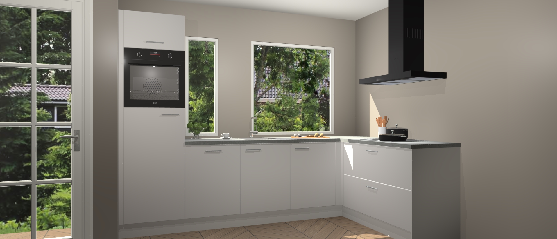 Deze complete keuken wordt geleverd met 5 inbouwapparaten: een oven, inductiekookplaat, afzuigkap, vaatwasser en koelkast. De toestellen kunnen na bestelling ook gemakkelijk worden opgewaardeerd naar AEG. Bovendien is elke deur in deze keuken voorzien van handige softclose technologie voor eenvoudig gebruik! Als een leuke toevoeging zit in deze keuken ook een carrousel, zo hoef je niet meer de hoek in duiken om iets te pakken.