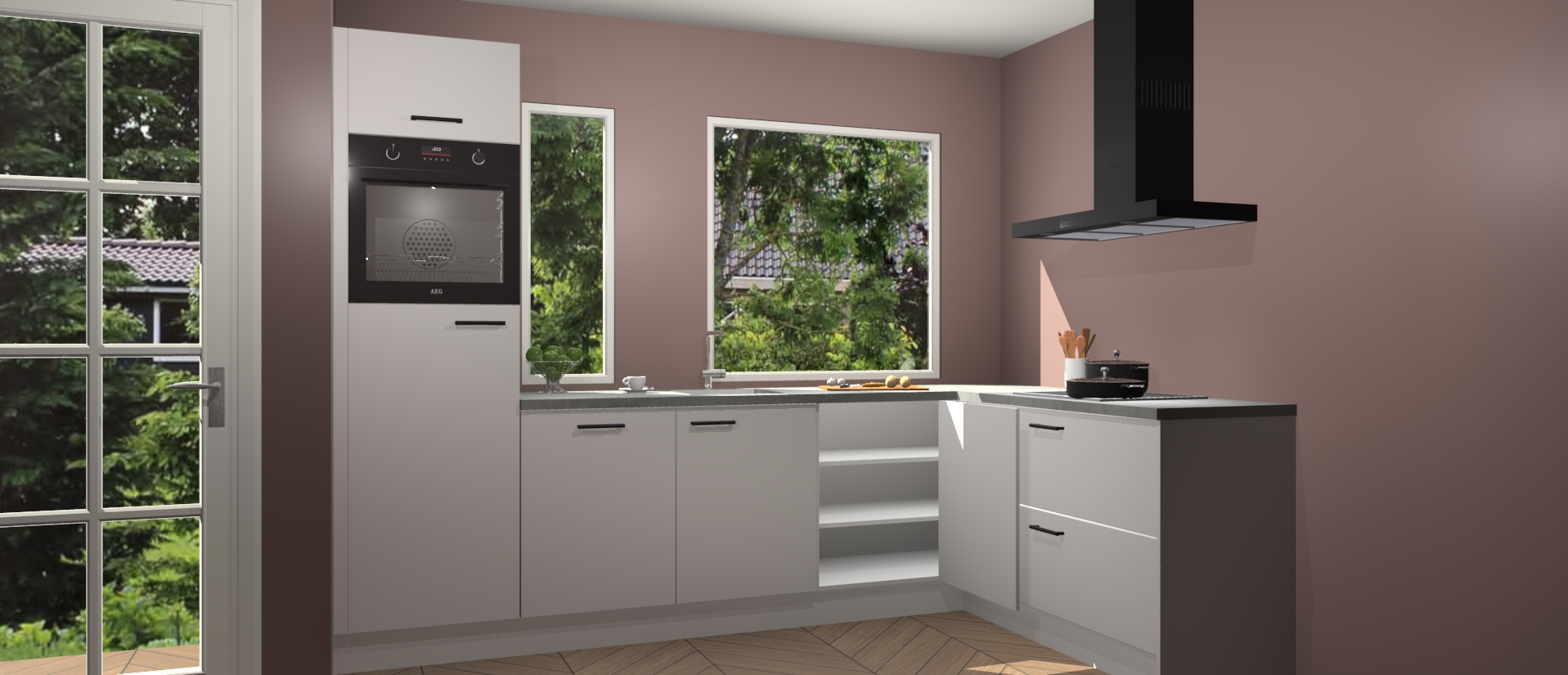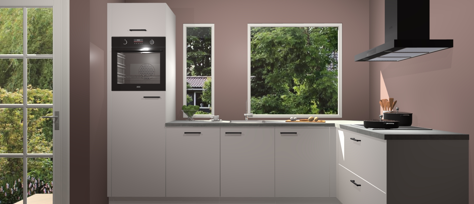 Deze complete keuken wordt geleverd met 5 inbouwapparaten: een oven, inductiekookplaat, afzuigkap, vaatwasser en koelkast. De toestellen kunnen na bestelling ook gemakkelijk worden opgewaardeerd naar AEG. Bovendien is elke deur in deze keuken voorzien van handige softclose technologie voor eenvoudig gebruik! Als een leuke toevoeging zit in deze keuken ook een carrousel, zo hoef je niet meer de hoek in duiken om iets te pakken.