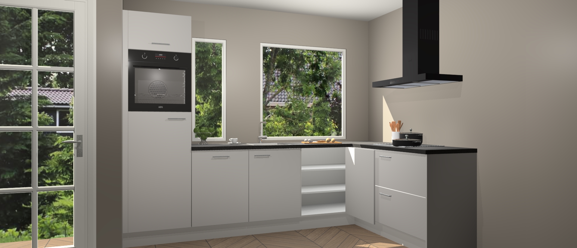 Deze complete keuken wordt geleverd met 5 inbouwapparaten: een oven, inductiekookplaat, afzuigkap, vaatwasser en koelkast. De toestellen kunnen na bestelling ook gemakkelijk worden opgewaardeerd naar AEG. Bovendien is elke deur in deze keuken voorzien van handige softclose technologie voor eenvoudig gebruik! Als een leuke toevoeging zit in deze keuken ook een carrousel, zo hoef je niet meer de hoek in duiken om iets te pakken.