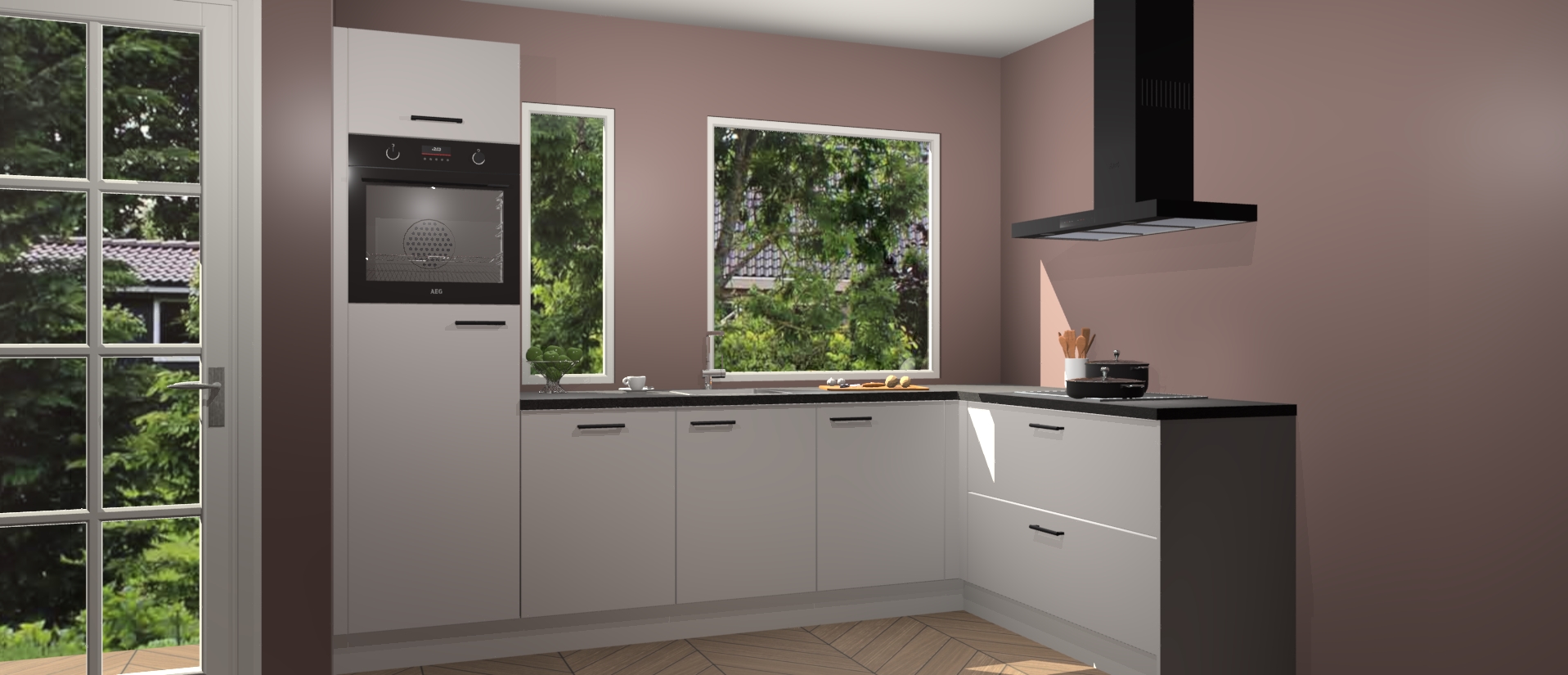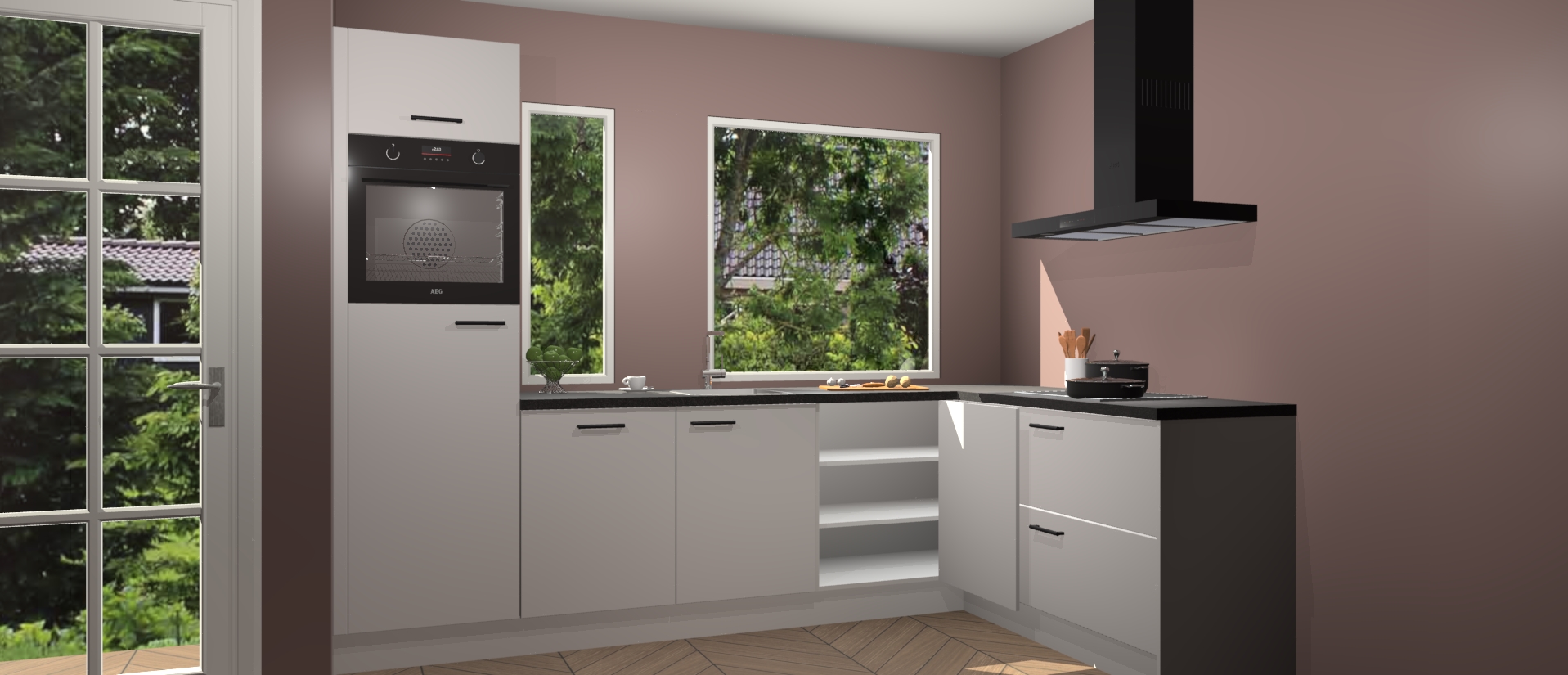 Deze complete keuken wordt geleverd met 5 inbouwapparaten: een oven, inductiekookplaat, afzuigkap, vaatwasser en koelkast. De toestellen kunnen na bestelling ook gemakkelijk worden opgewaardeerd naar AEG. Bovendien is elke deur in deze keuken voorzien van handige softclose technologie voor eenvoudig gebruik! Als een leuke toevoeging zit in deze keuken ook een carrousel, zo hoef je niet meer de hoek in duiken om iets te pakken.