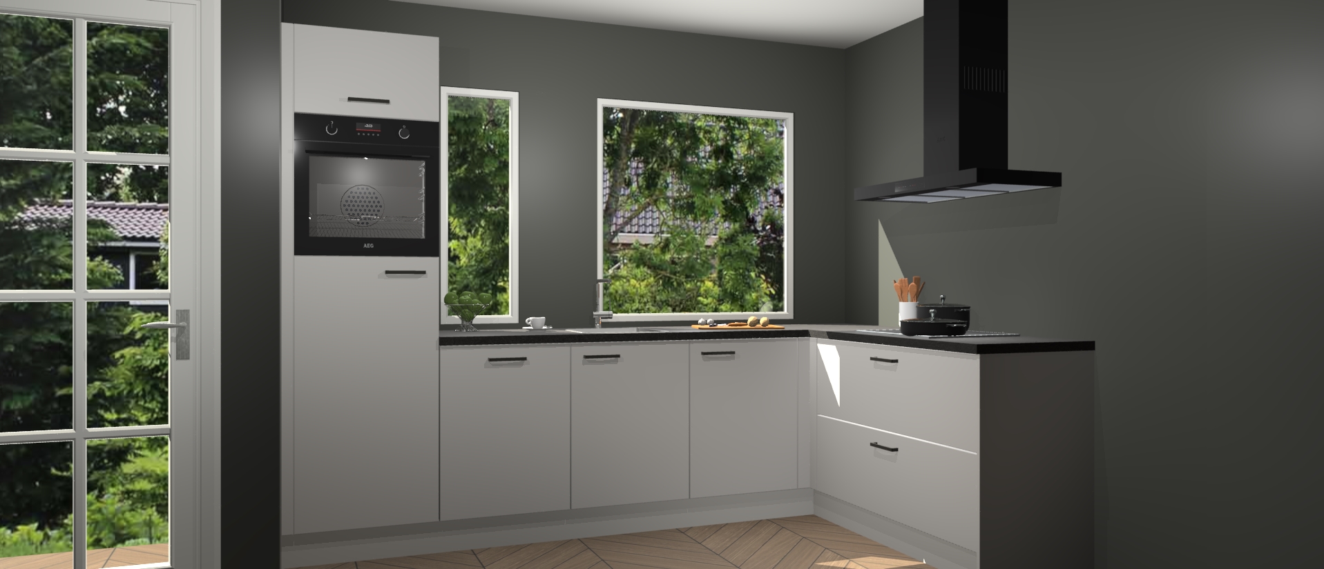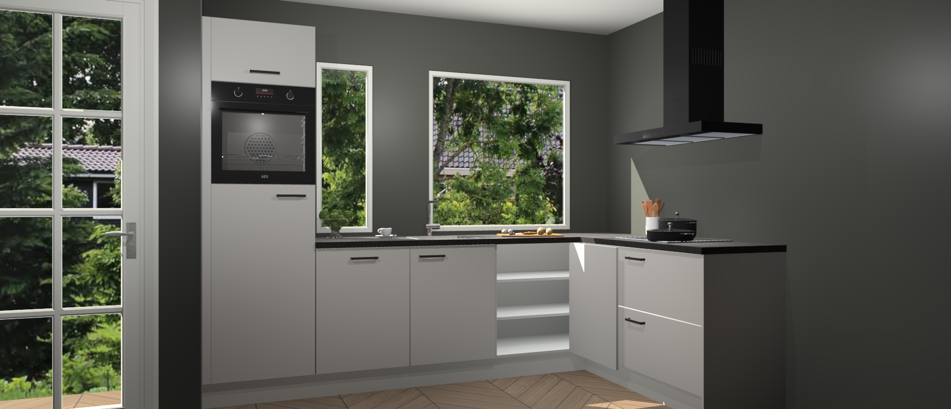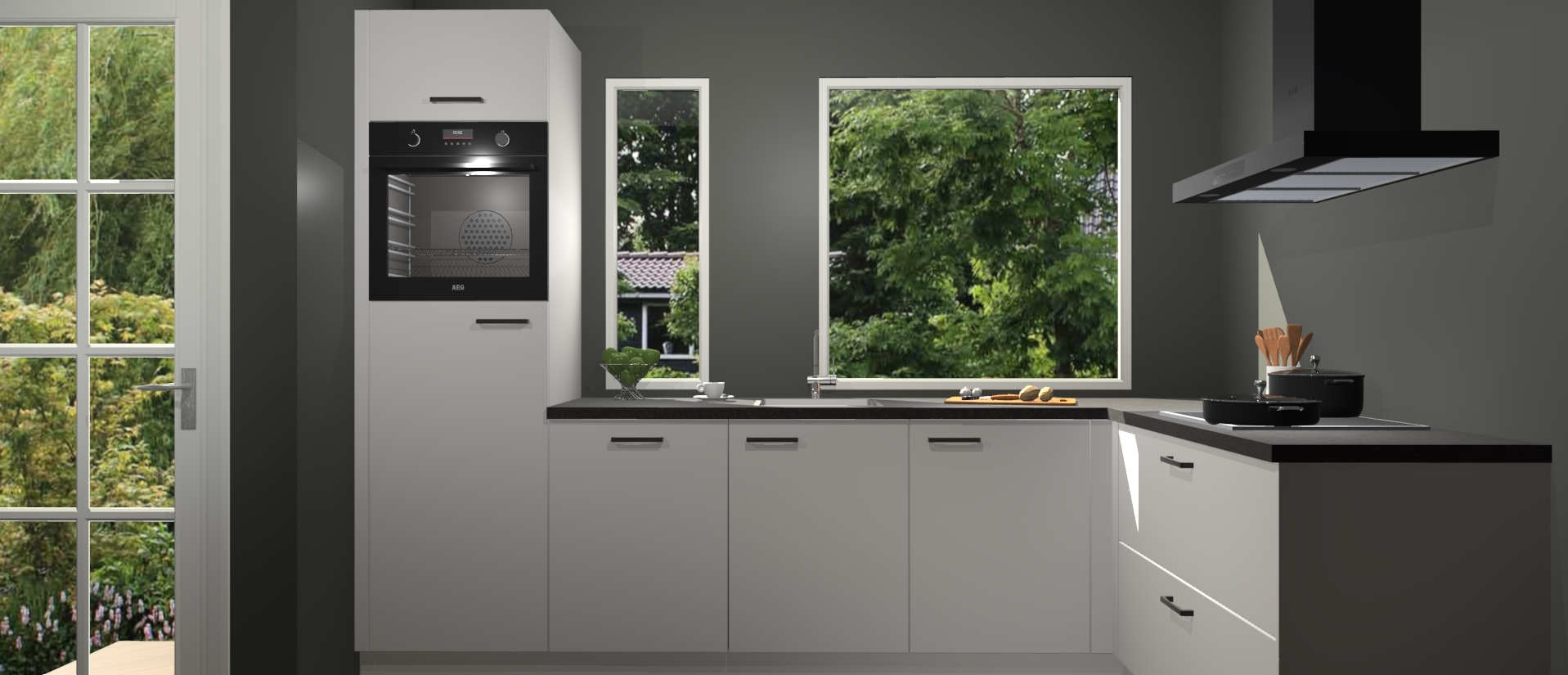 Deze complete keuken wordt geleverd met 5 inbouwapparaten: een oven, inductiekookplaat, afzuigkap, vaatwasser en koelkast.  De toestellen kunnen na bestelling ook gemakkelijk worden opgewaardeerd naar AEG. Bovendien is elke deur in deze keuken voorzien van handige softclose technologie voor eenvoudig gebruik! Als een leuke toevoeging zit in deze keuken ook een carrousel, zo hoef je niet meer de hoek in duiken om iets te pakken.