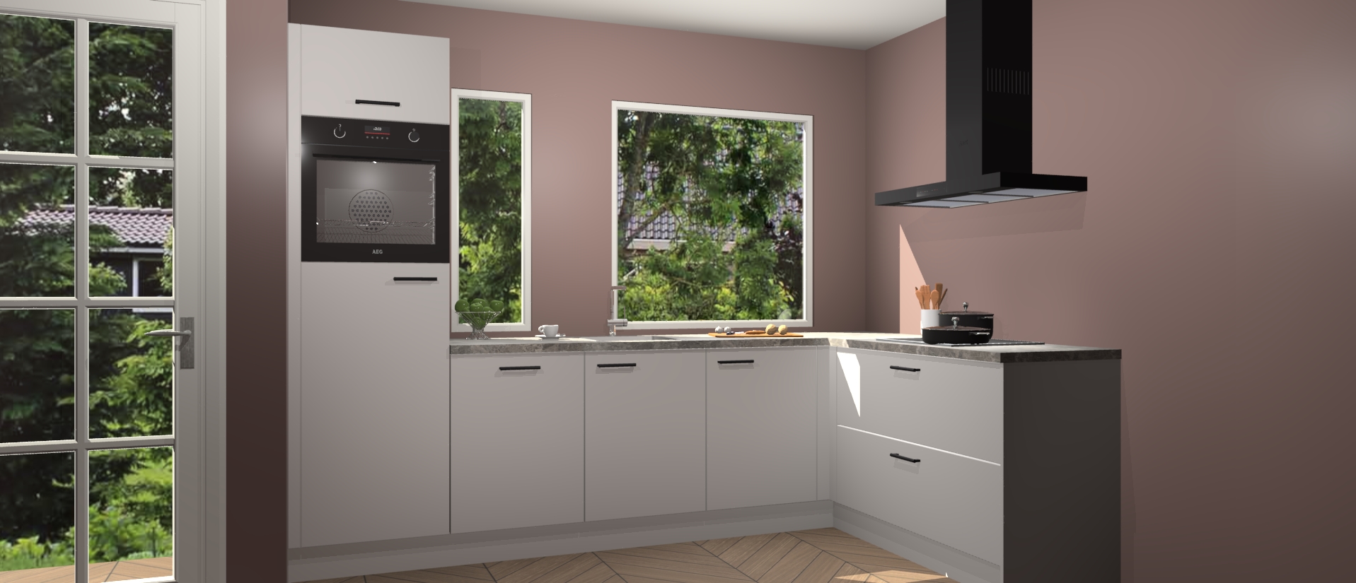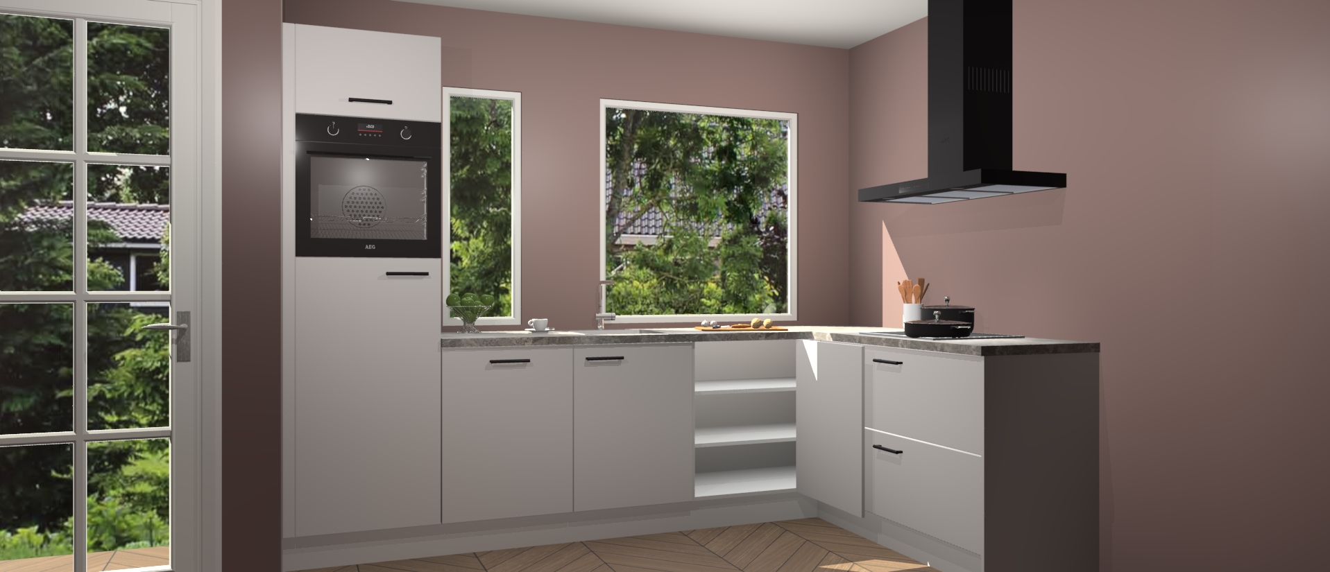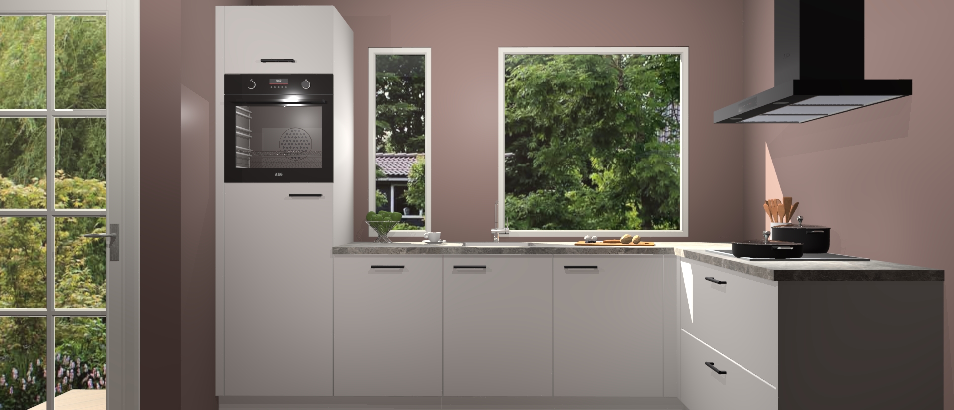 Deze complete keuken wordt geleverd met 5 inbouwapparaten: een oven, inductiekookplaat, afzuigkap, vaatwasser en koelkast. De toestellen kunnen na bestelling ook gemakkelijk worden opgewaardeerd naar AEG. Bovendien is elke deur in deze keuken voorzien van handige softclose technologie voor eenvoudig gebruik! Als een leuke toevoeging zit in deze keuken ook een carrousel, zo hoef je niet meer de hoek in duiken om iets te pakken.