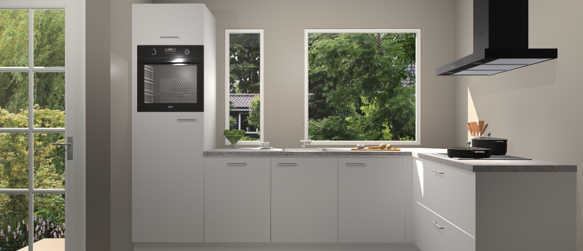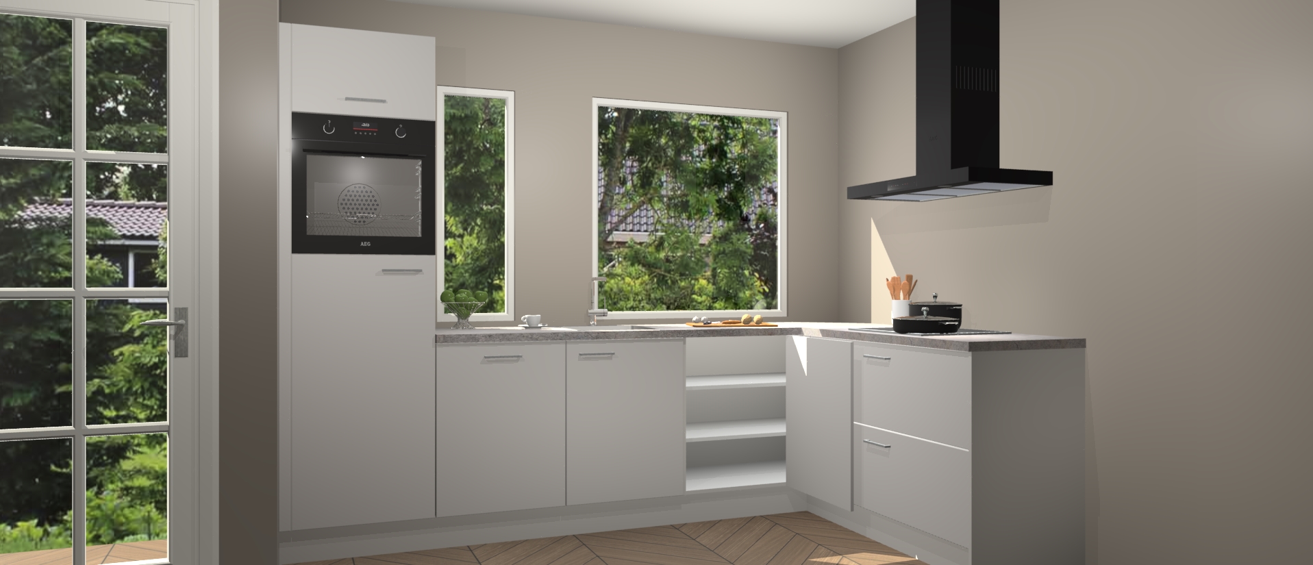 Deze complete keuken wordt geleverd met 5 inbouwapparaten: een oven, inductiekookplaat, afzuigkap, vaatwasser en koelkast. De toestellen kunnen na bestelling ook gemakkelijk worden opgewaardeerd naar AEG. Bovendien is elke deur in deze keuken voorzien van handige softclose technologie voor eenvoudig gebruik! Als een leuke toevoeging zit in deze keuken ook een carrousel, zo hoef je niet meer de hoek in duiken om iets te pakken.
