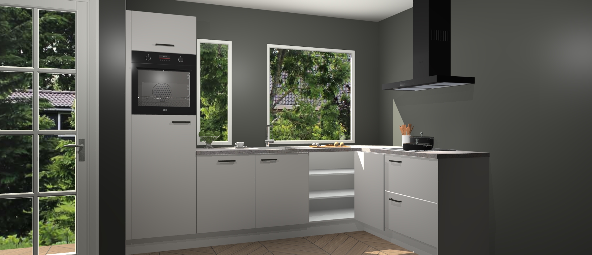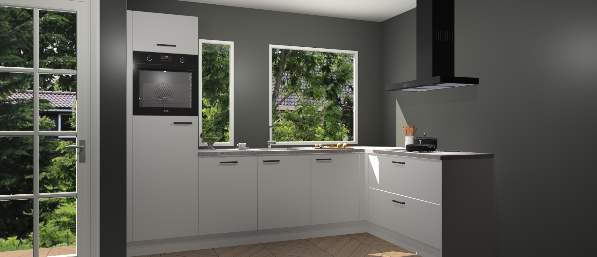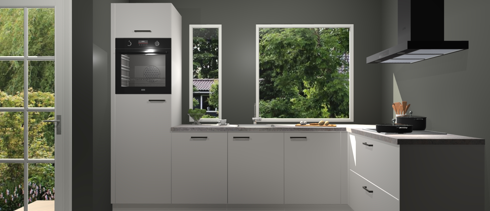 Deze complete keuken wordt geleverd met 5 inbouwapparaten: een oven, inductiekookplaat, afzuigkap, vaatwasser en koelkast. De toestellen kunnen na bestelling ook gemakkelijk worden opgewaardeerd naar AEG. Bovendien is elke deur in deze keuken voorzien van handige softclose technologie voor eenvoudig gebruik! Als een leuke toevoeging zit in deze keuken ook een carrousel, zo hoef je niet meer de hoek in duiken om iets te pakken.