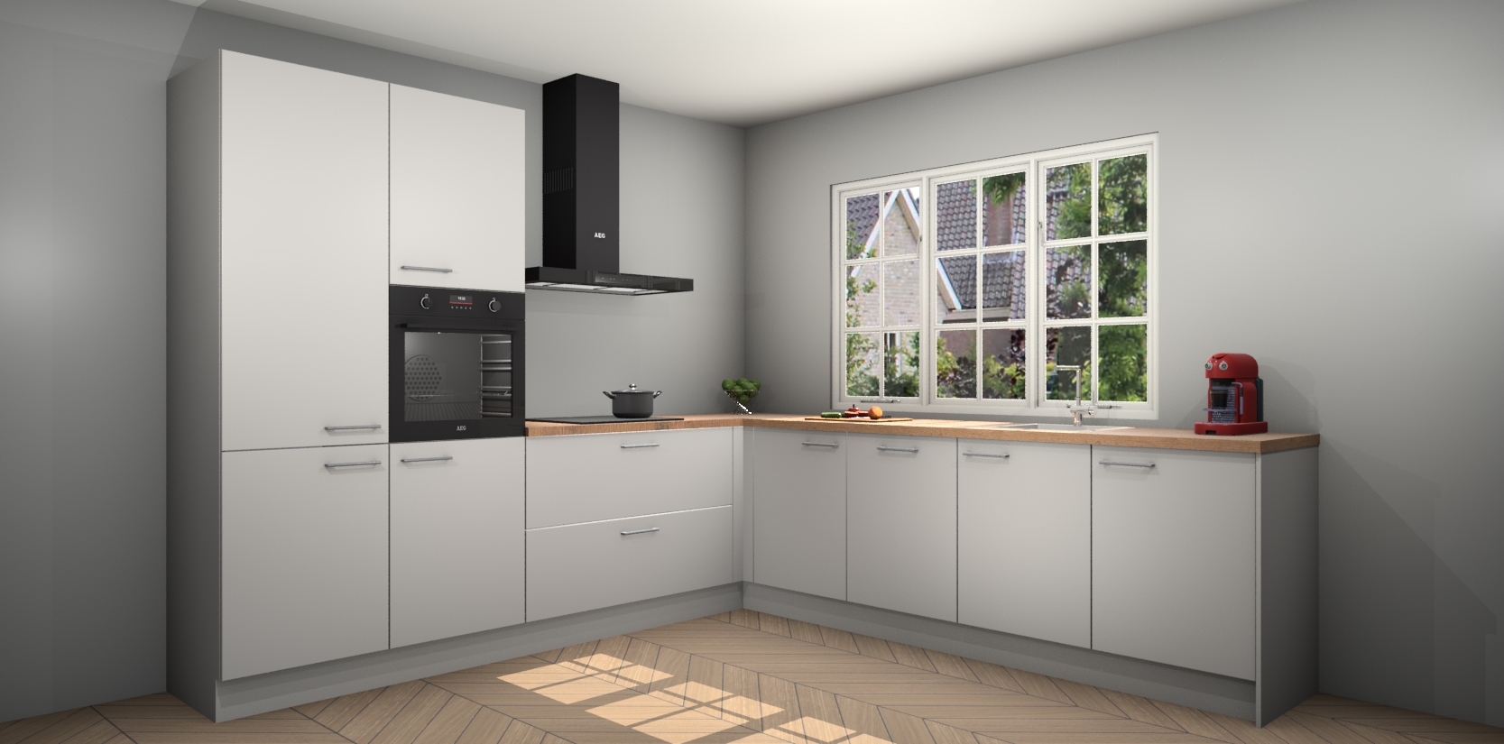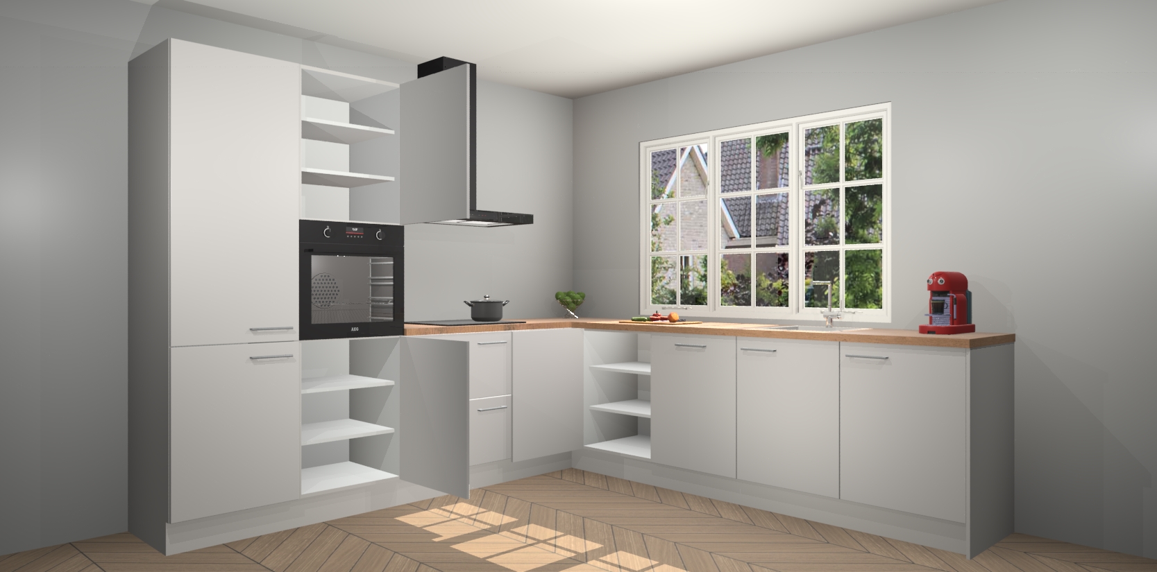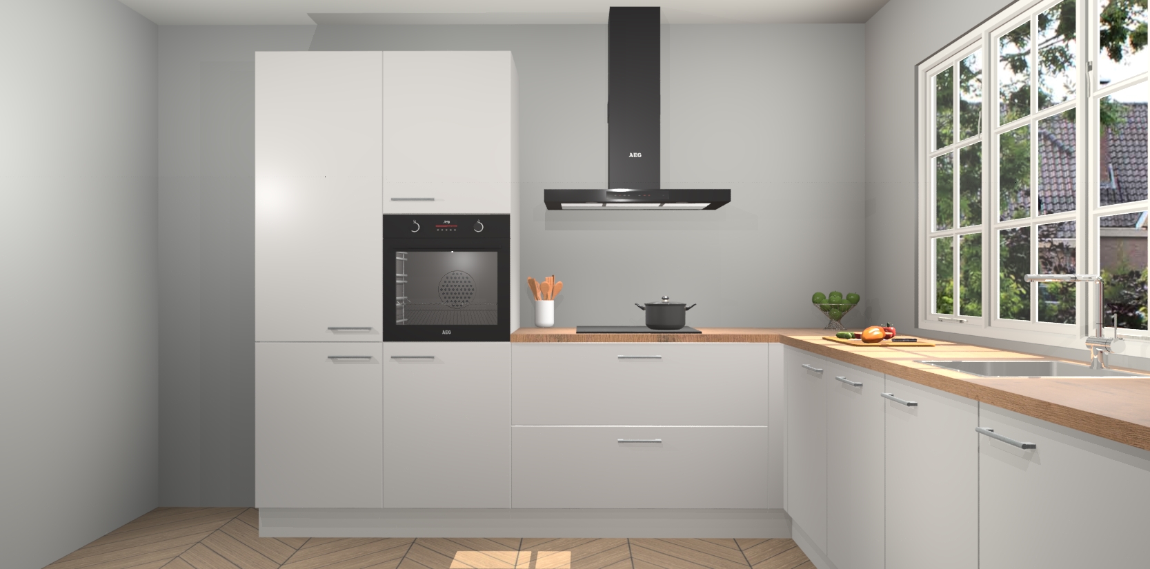 De keuken heeft veel opbergruimte, waardoor u alle ingrediënten gemakkelijk bereikbaar hebt staan. En daarnaast bevat deze volledig uitgeruste keuken ook 5 ingebouwde apparaten: een oven, inductiekookplaat, afzuigkap, vaatwasser en koelkast. Deze zijn heel eenvoudig na bestellen te upgraden naar AEG als u dit wilt. Bovendien zijn de softclose-kastdeuren ideaal; geef ze gewoon even een tikje en ze sluiten automatisch met geruisloze precisie.