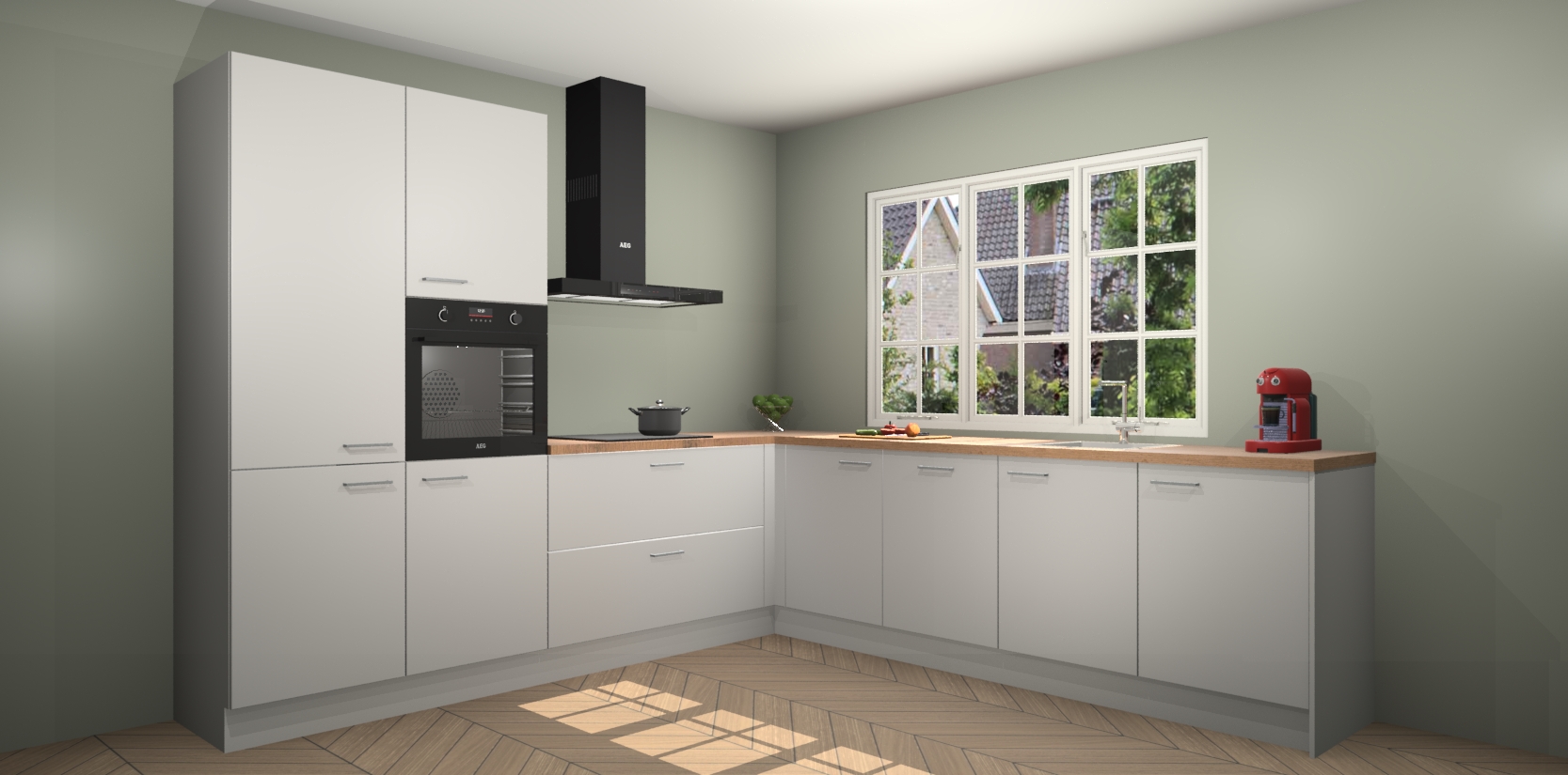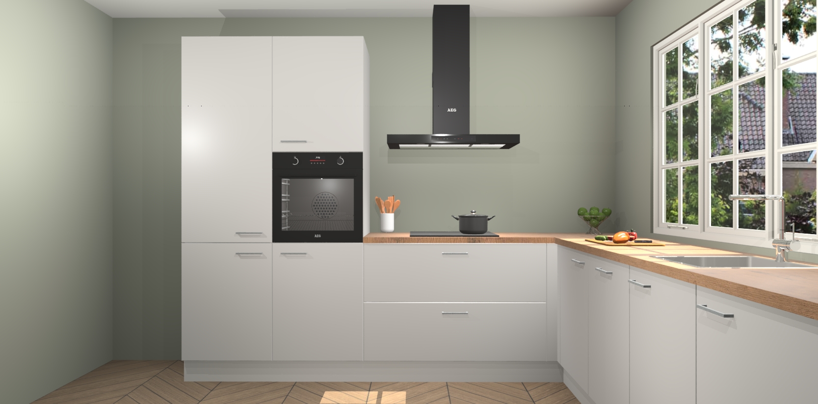 De keuken heeft veel opbergruimte, waardoor u alle ingrediënten gemakkelijk bereikbaar hebt staan. En daarnaast bevat deze volledig uitgeruste keuken ook 5 ingebouwde apparaten: een oven, inductiekookplaat, afzuigkap, vaatwasser en koelkast. Deze zijn heel eenvoudig na bestellen te upgraden naar AEG als u dit wilt. Bovendien zijn de softclose-kastdeuren ideaal; geef ze gewoon even een tikje en ze sluiten automatisch met geruisloze precisie.