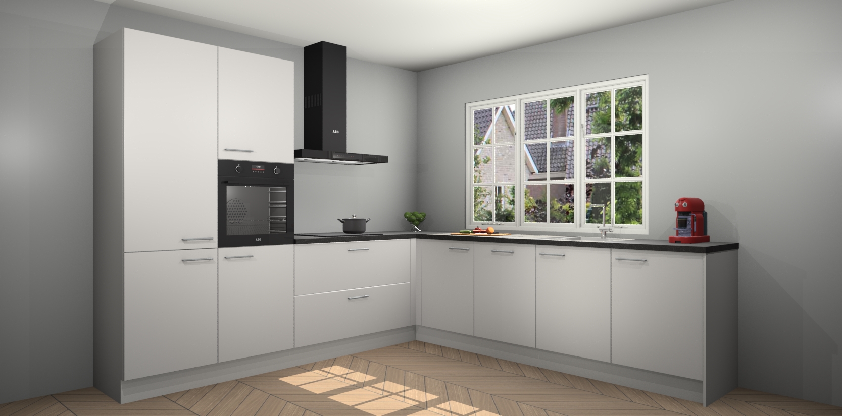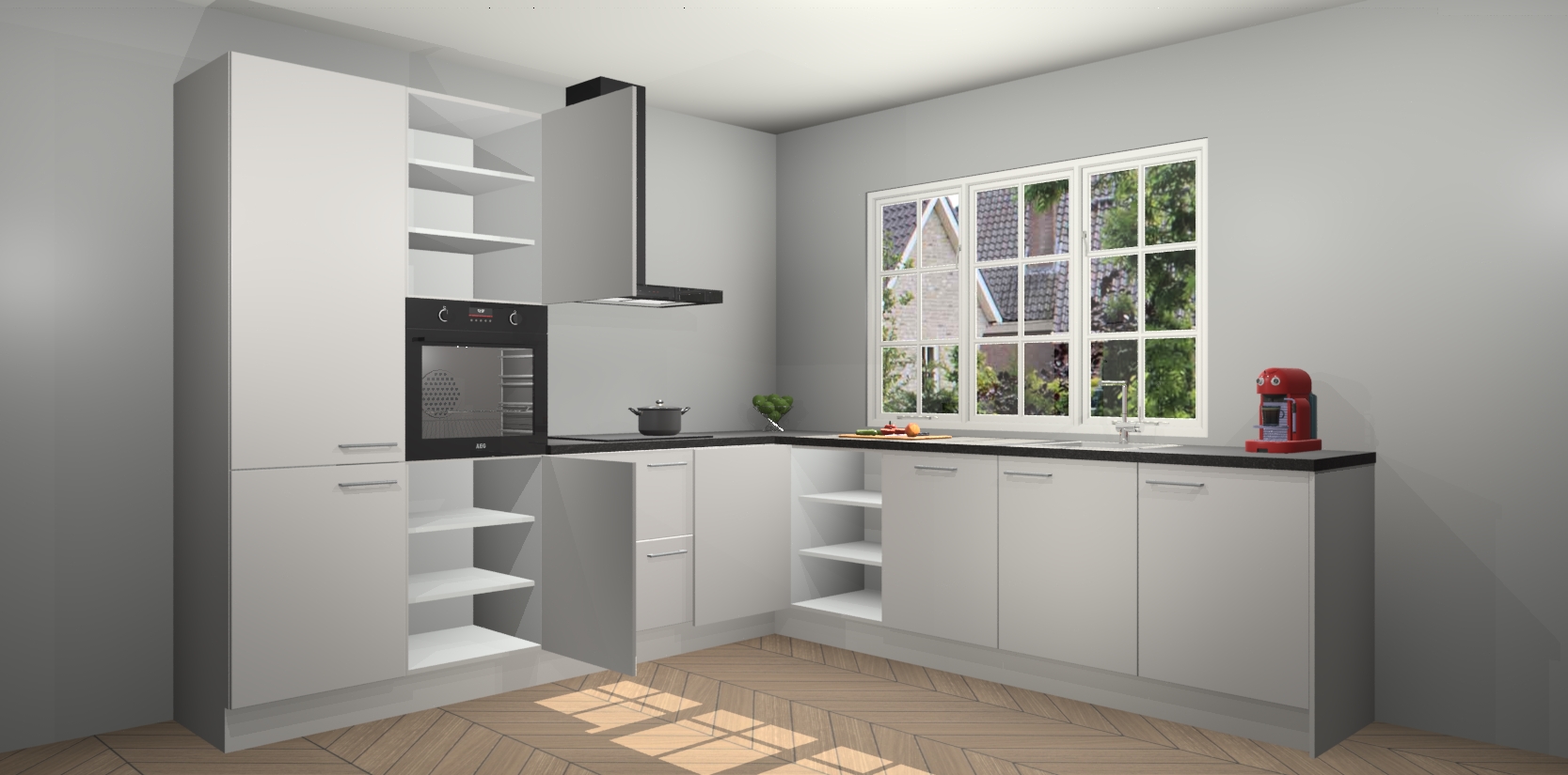 De keuken heeft veel opbergruimte, waardoor u alle ingrediënten gemakkelijk bereikbaar hebt staan. En daarnaast bevat deze volledig uitgeruste keuken ook 5 ingebouwde apparaten: een oven, inductiekookplaat, afzuigkap, vaatwasser en koelkast. Deze zijn heel eenvoudig na bestellen te upgraden naar AEG als u dit wilt. Bovendien zijn de softclose-kastdeuren ideaal; geef ze gewoon even een tikje en ze sluiten automatisch met geruisloze precisie.
