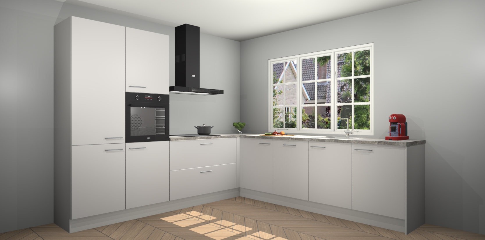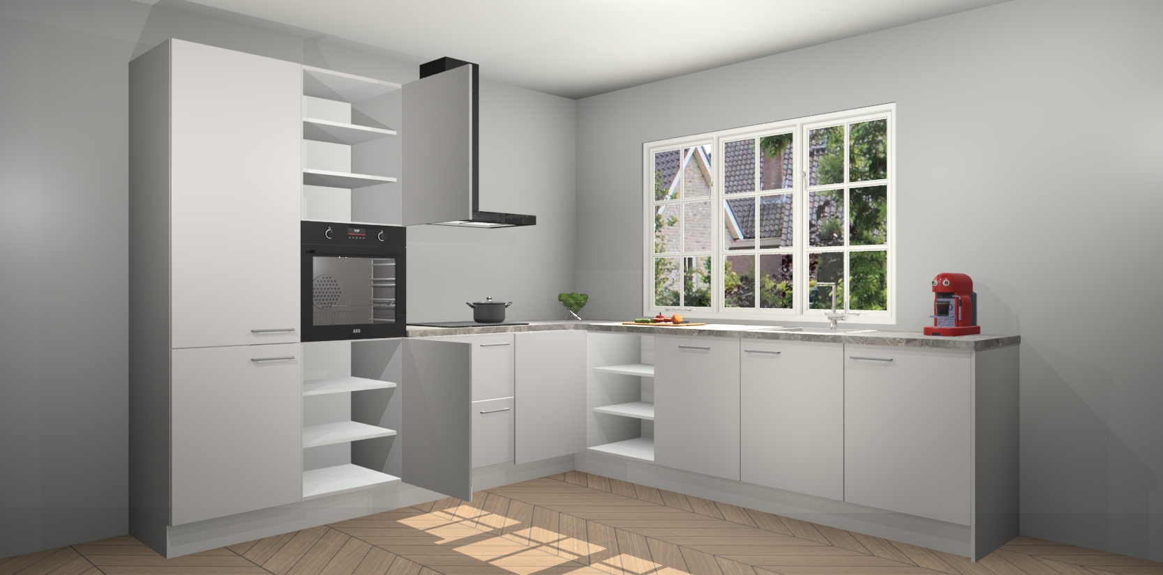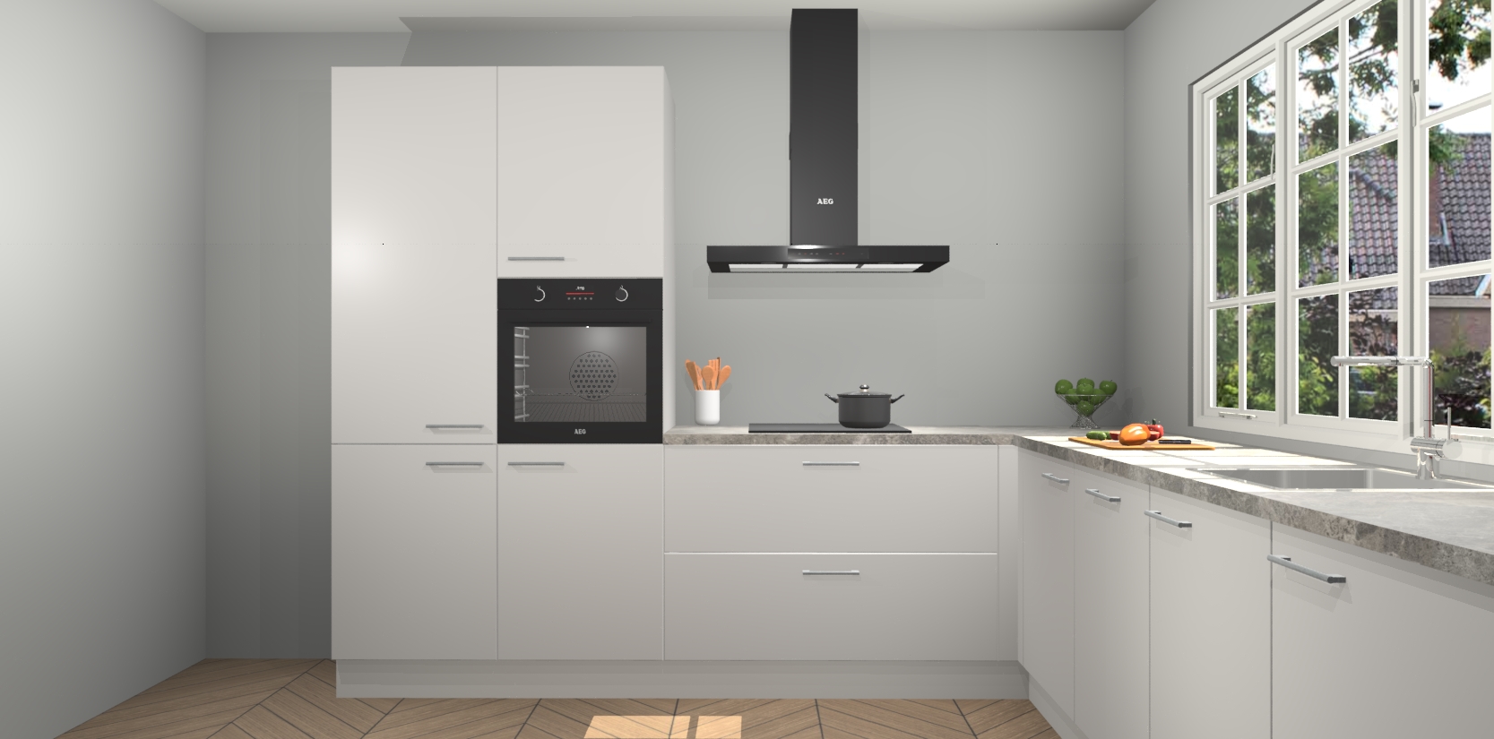 De keuken heeft veel opbergruimte, waardoor u alle ingrediënten gemakkelijk bereikbaar hebt staan. En daarnaast bevat deze volledig uitgeruste keuken ook 5 ingebouwde apparaten: een oven, inductiekookplaat, afzuigkap, vaatwasser en koelkast. Deze zijn heel eenvoudig na bestellen te upgraden naar AEG als u dit wilt. Bovendien zijn de softclose-kastdeuren ideaal; geef ze gewoon even een tikje en ze sluiten automatisch met geruisloze precisie.