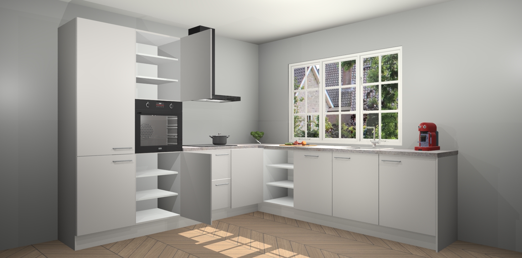 De keuken heeft veel opbergruimte, waardoor u alle ingrediënten gemakkelijk bereikbaar hebt staan. En daarnaast bevat deze volledig uitgeruste keuken ook 5 ingebouwde apparaten: een oven, inductiekookplaat, afzuigkap, vaatwasser en koelkast. Deze zijn heel eenvoudig na bestellen te upgraden naar AEG als u dit wilt. Bovendien zijn de softclose-kastdeuren ideaal; geef ze gewoon even een tikje en ze sluiten automatisch met geruisloze precisie.